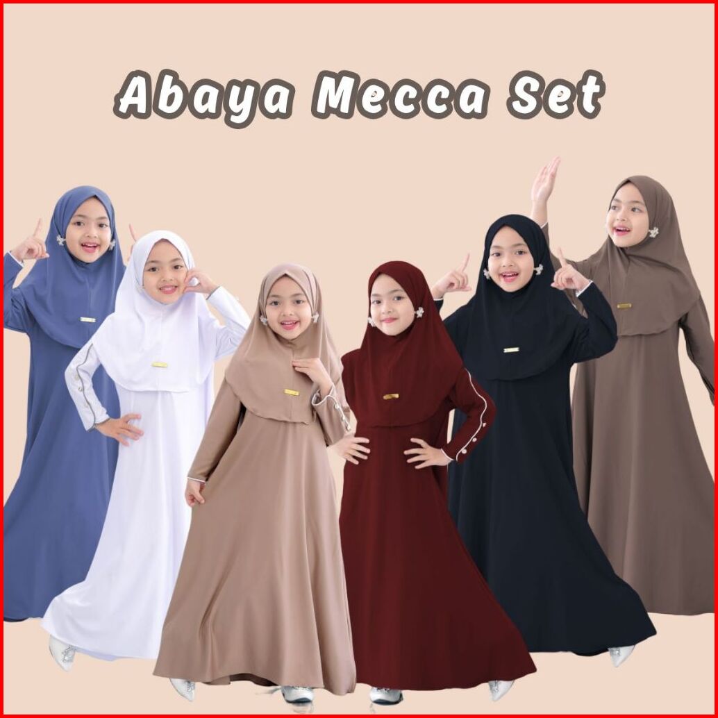 Gamis Anak Jersey Premium Mecca Set Abaya Anak Perempuan 3-12 Tahun Gamis Anak Set Jilbab