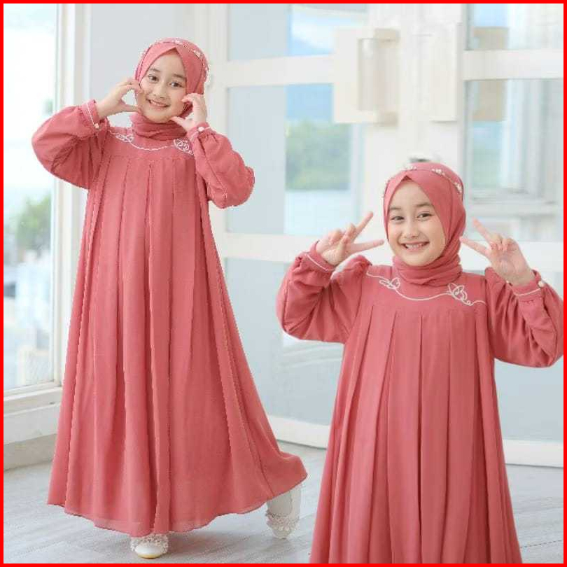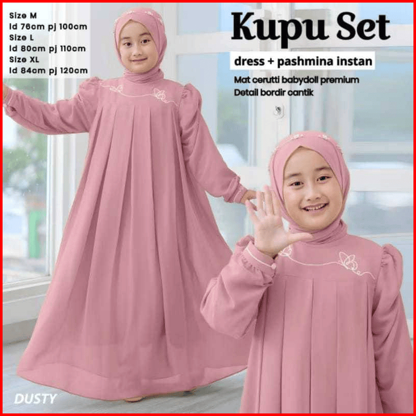 Kupu Set Gamis Muslim Anak Usia 5-14 Tahun Bahan Cringkle Mewah Baju Dress Kondangan Lebaran Bordir