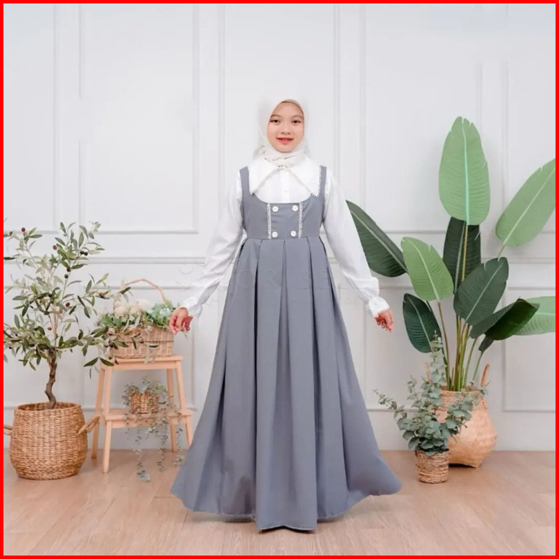 Pakaian Muslim Anak Perempuan Arsyi Overal Kids Usia 8-15 Tahun Bahan Polo Linnen Gamis Anak Terbaru