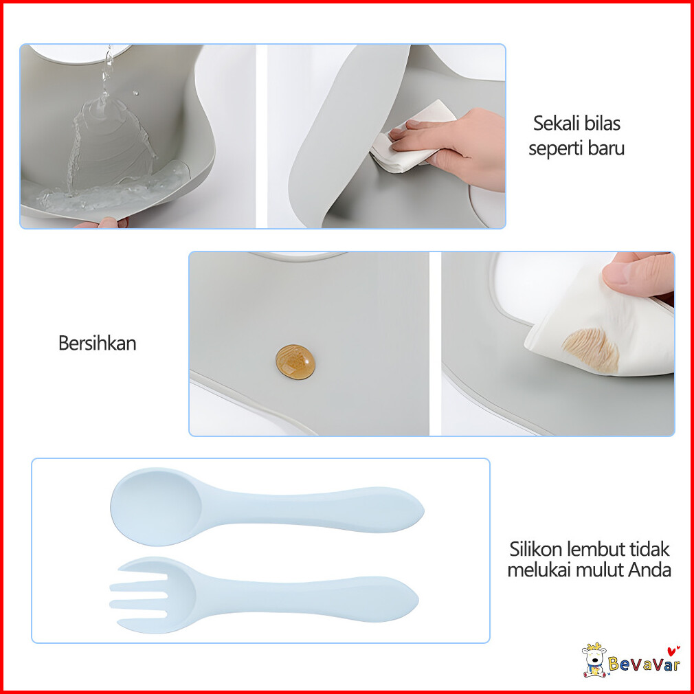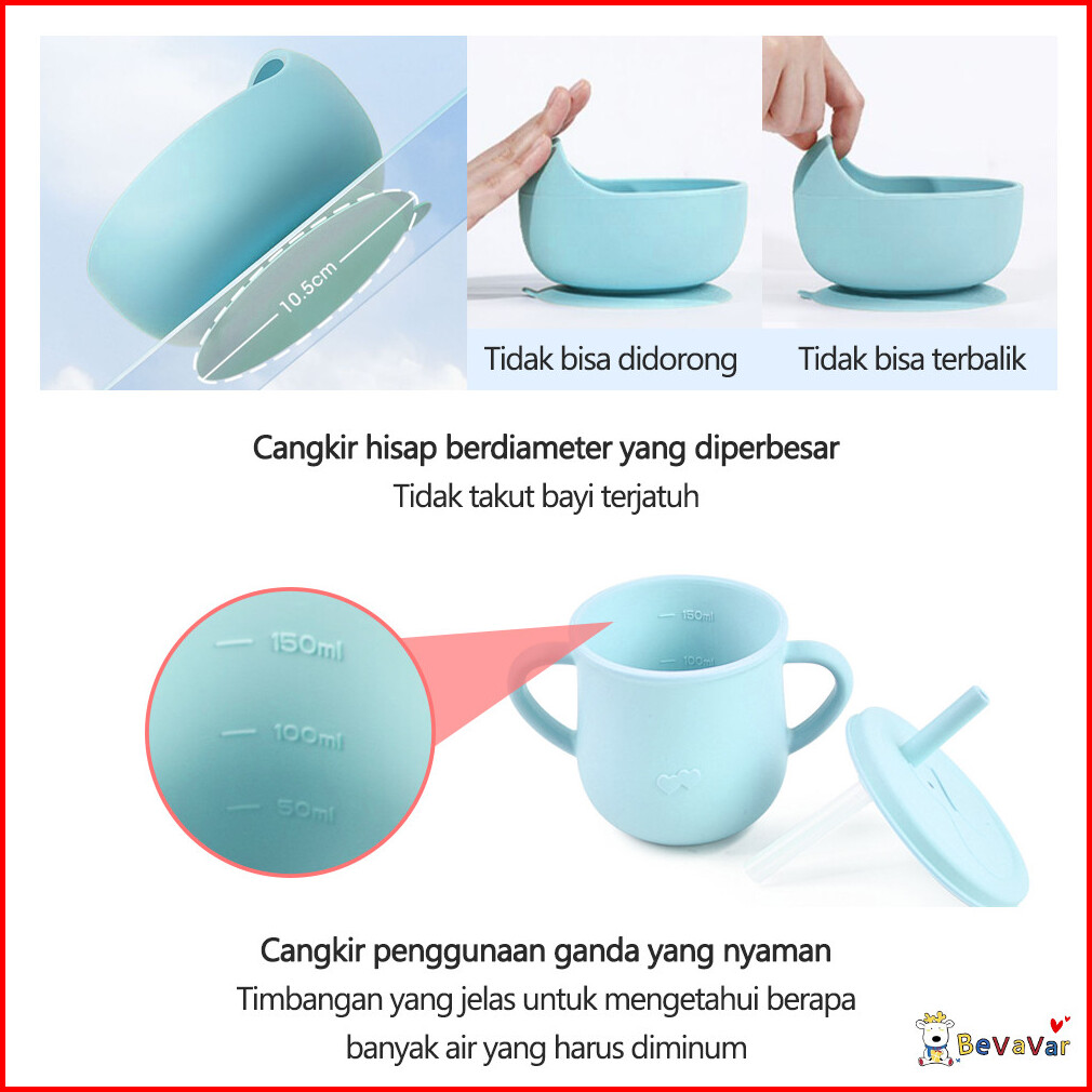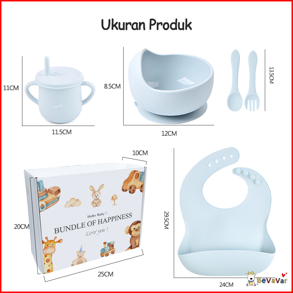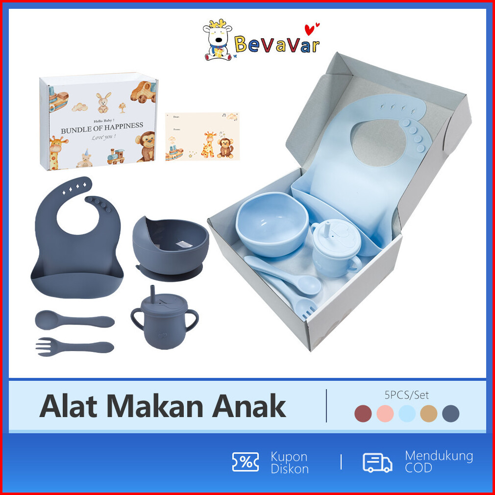 Bevavar 5pcs Peralatan Makan Bayi Silicone Celemek Makan Bayi Training Cup Anak Mangkok Sendok Bayi