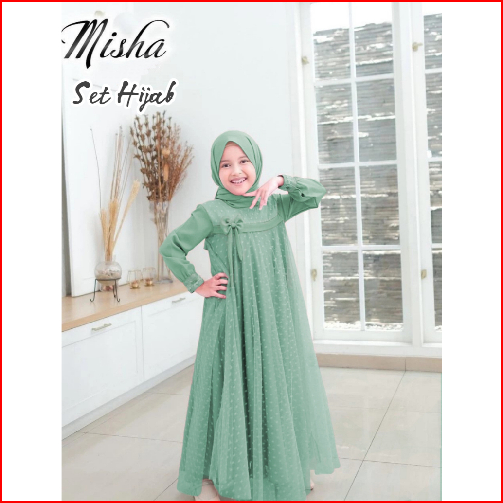 Baju Gamis Anak Terbaru Dres Anak Perempuan Set Hijab Crinkle Airflow Mix Tile
