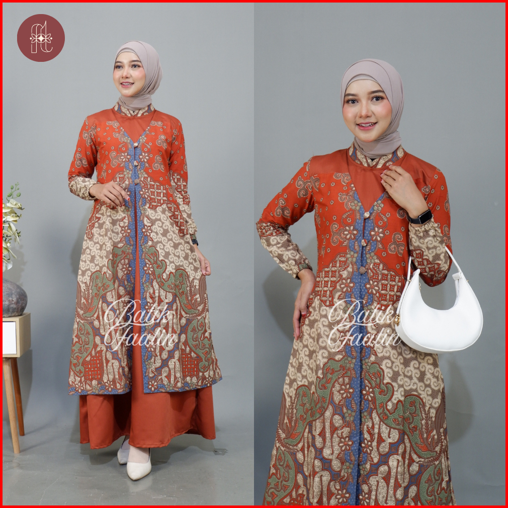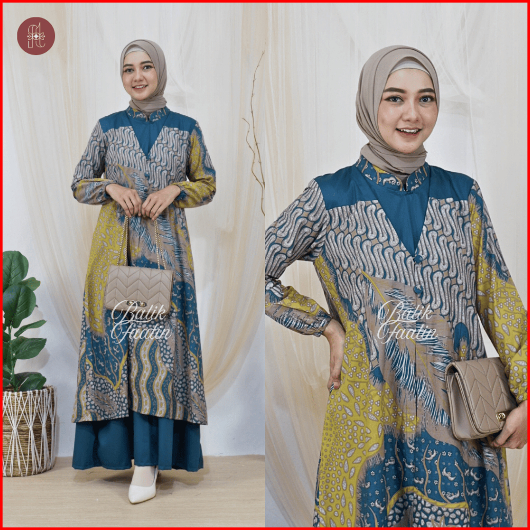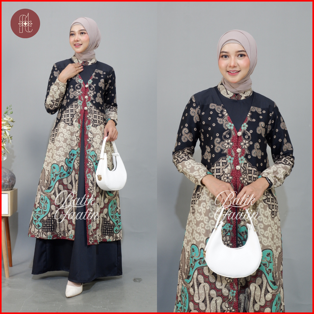 Batik Faatin Zayna Dress Gamis Batik Couple Katun Kombinasi Polos Toyobo Premium Batik Couple Gamis Terbaru Gamis Batik