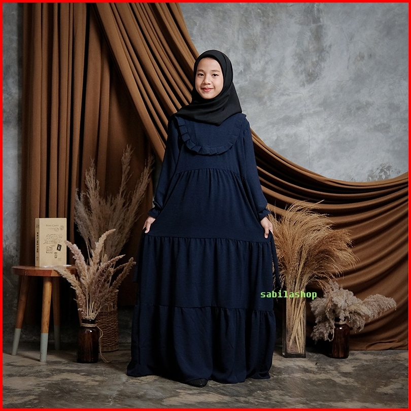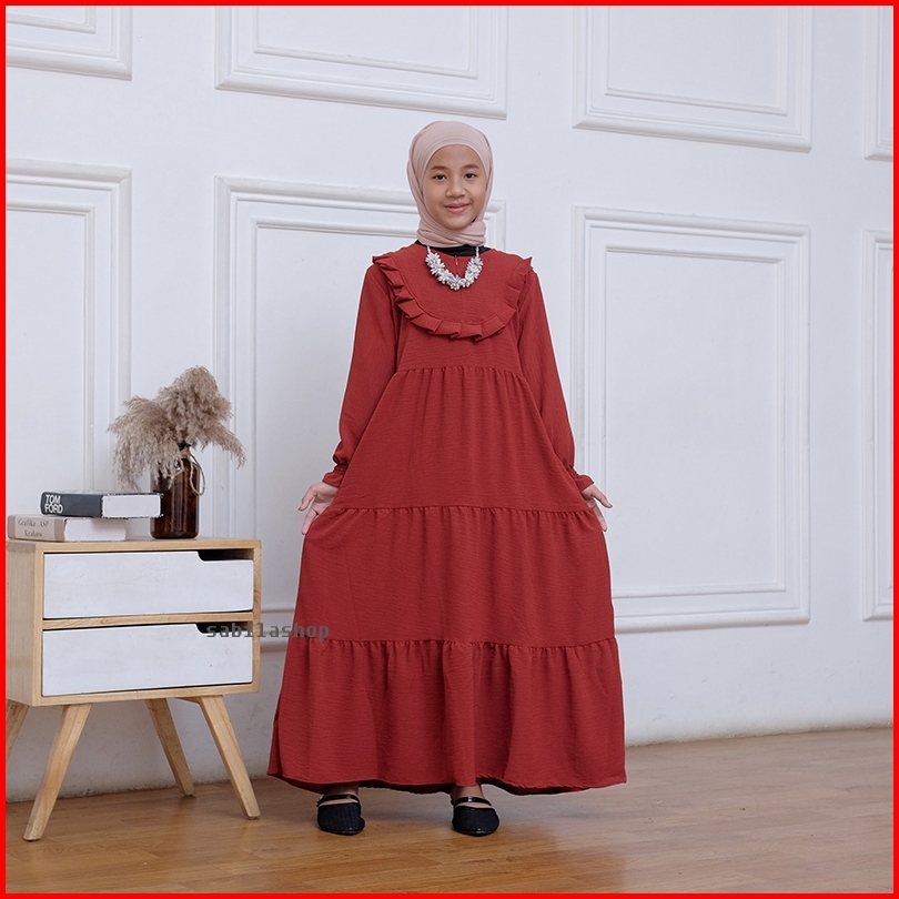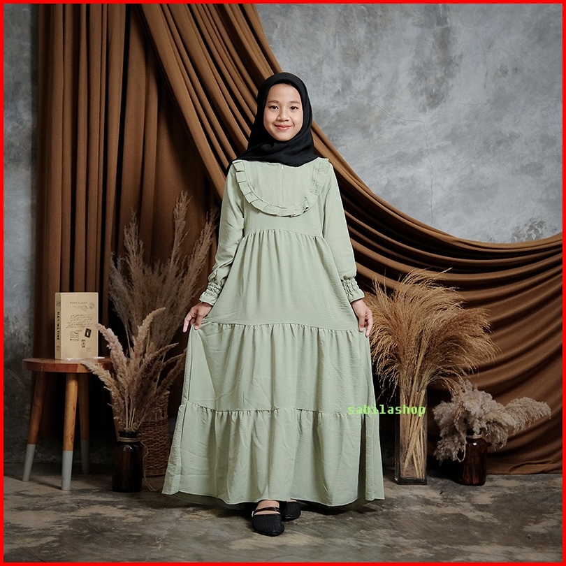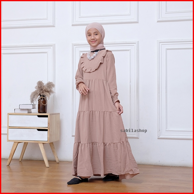 Gamis Cringkle Anak Perempuan 6-16 Tahun Remaja Tanggung Fashion Muslim Longdress Kids Girl Serut Susun Modern Premium G