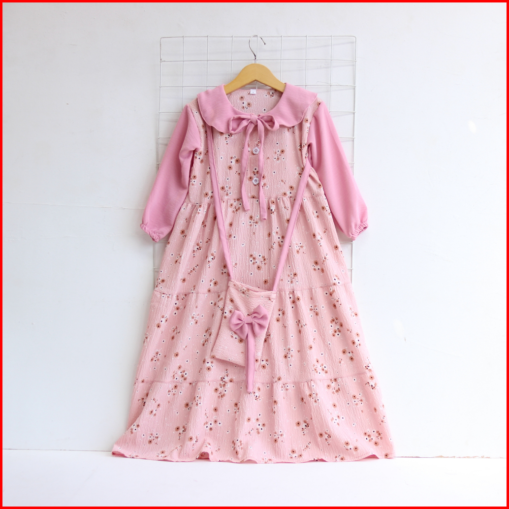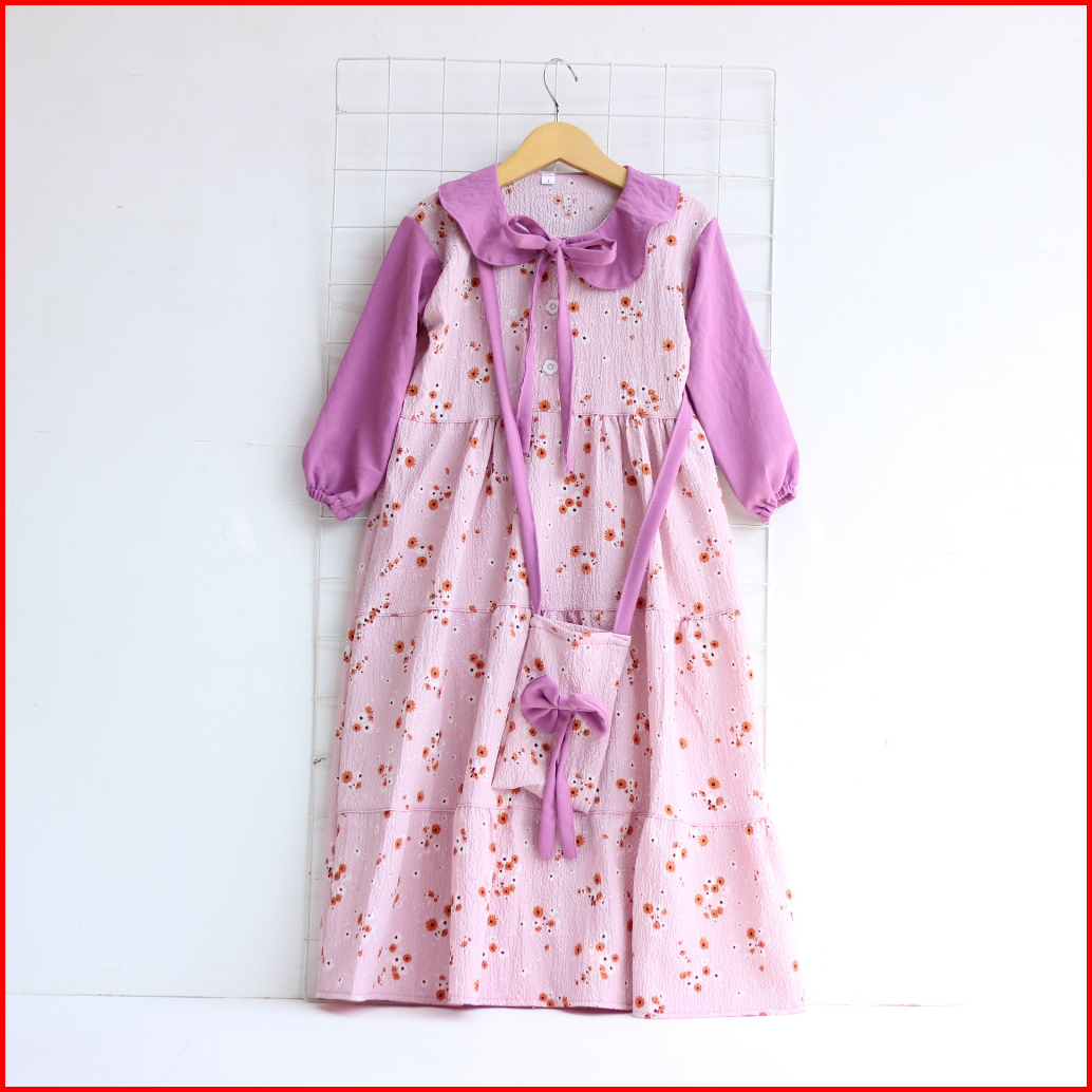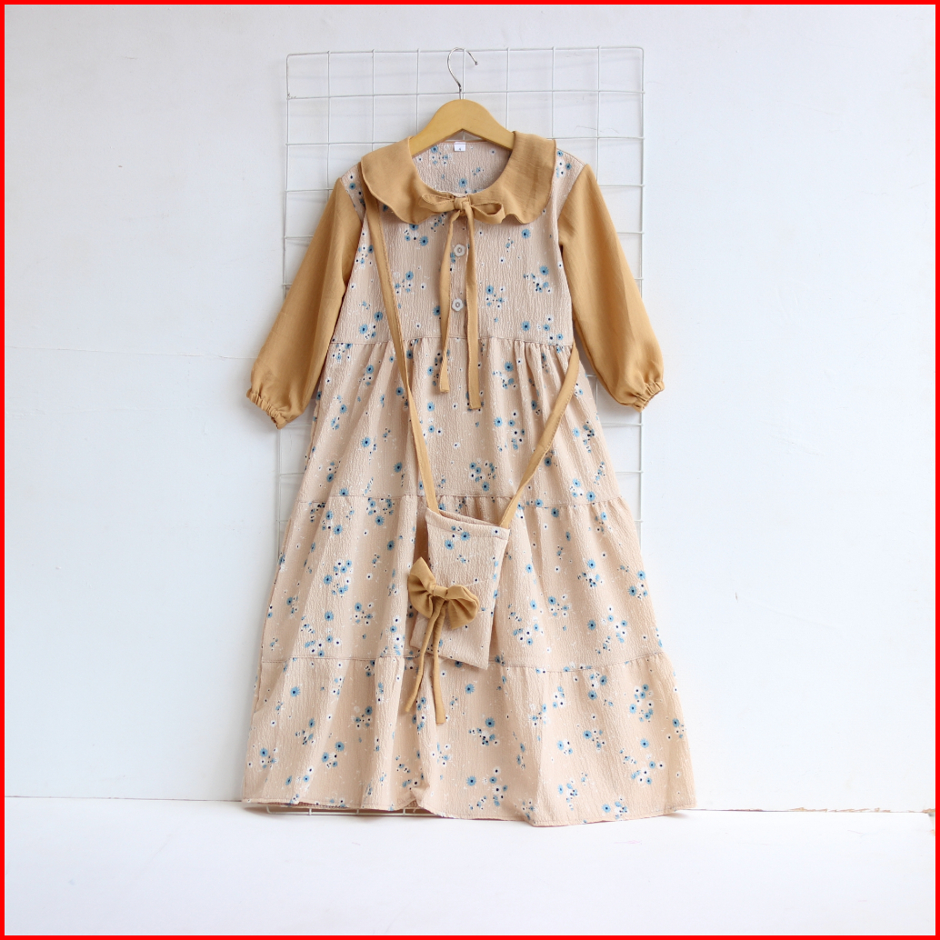 Galeriaika - Mahira Dress I Gamis Anak Perempuan Crinkle Airflow Free Tas Slempang 1-12 Tahun