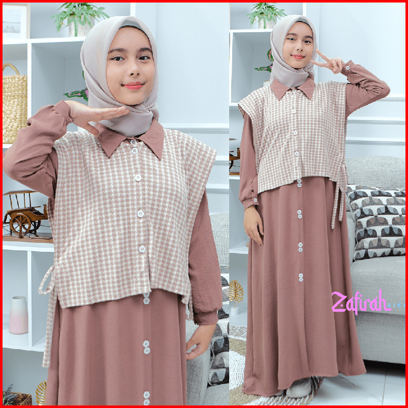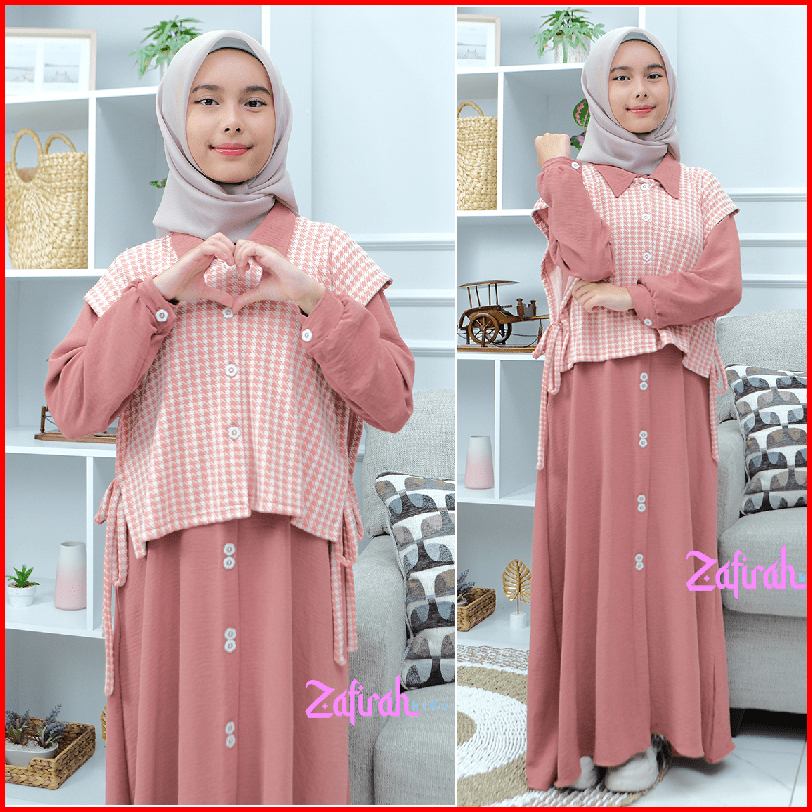 Baju Gamis Anak Perempuan Terbaru Hanifah Dress With Vest Rompi Korean Style By Zafirah Kids