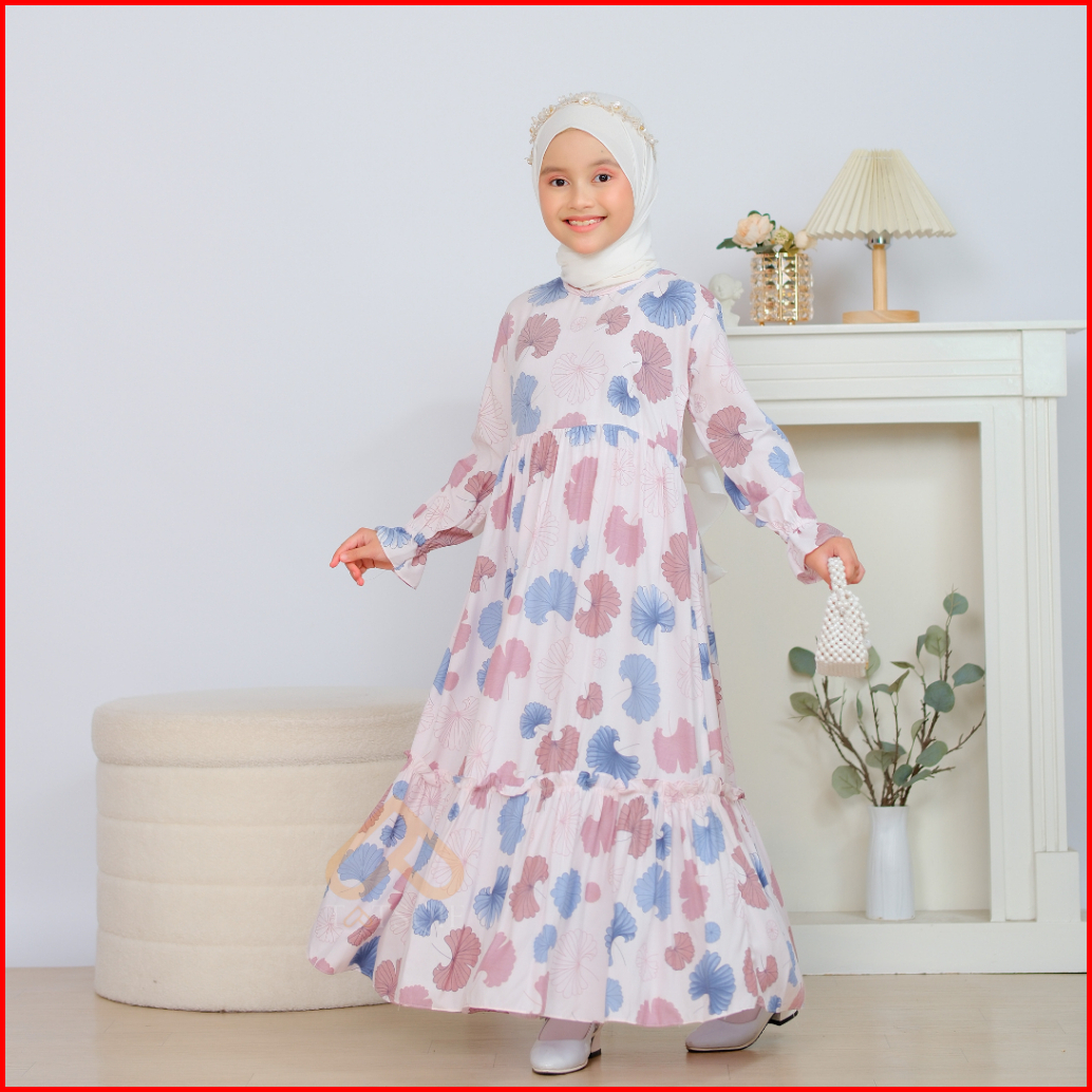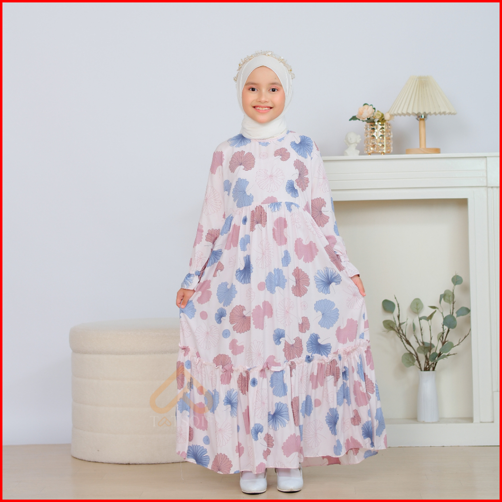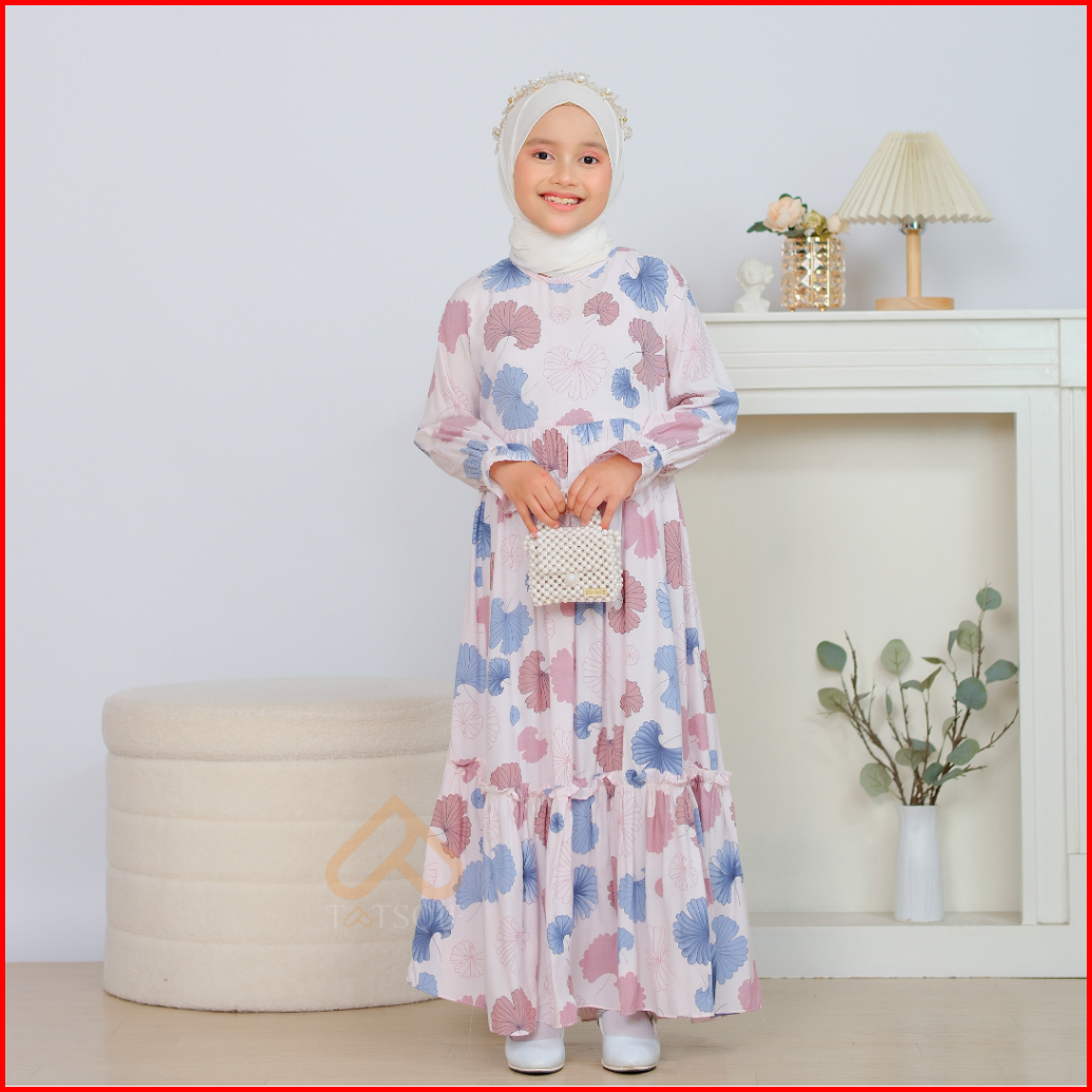 Tatsqif Gamis Anak Syari Dress Perempuan Usia 3-12 Tahun Berkualitas Motif Bunga Daurala Katun Rayon Good Quality