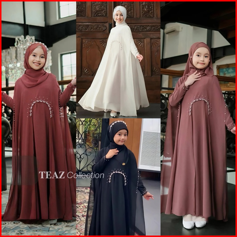 Teaz - Luna Abaya Kids Outher Aplikasi Payet Mutiara Ceruty Babydoll Abaya Anak Perempuan Ceruty Babydoll