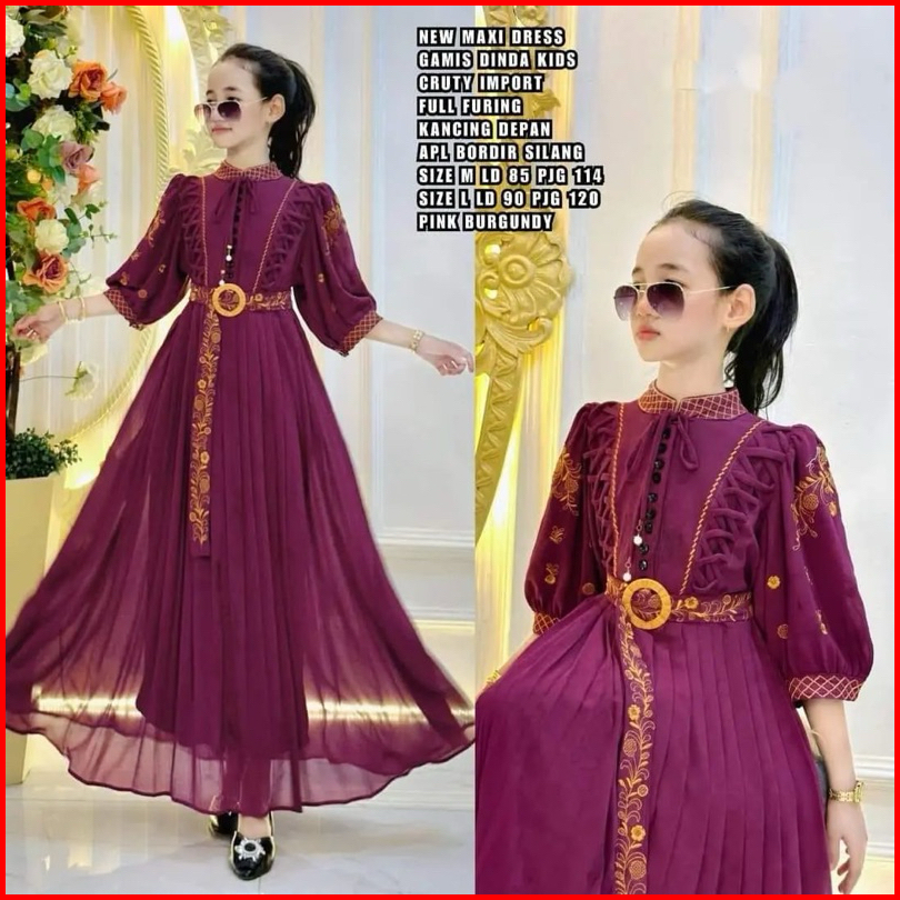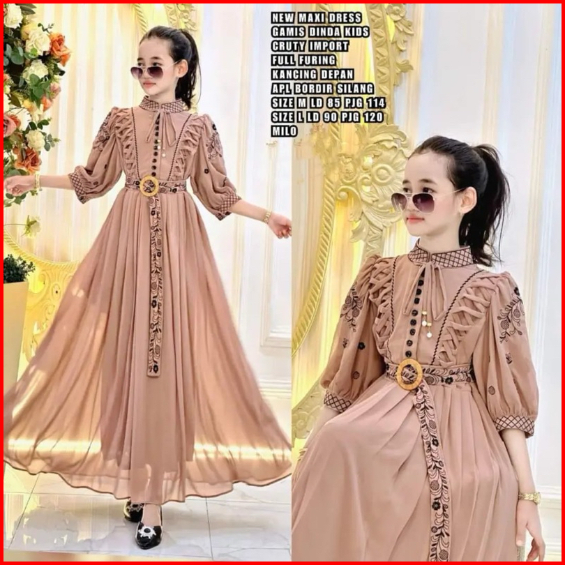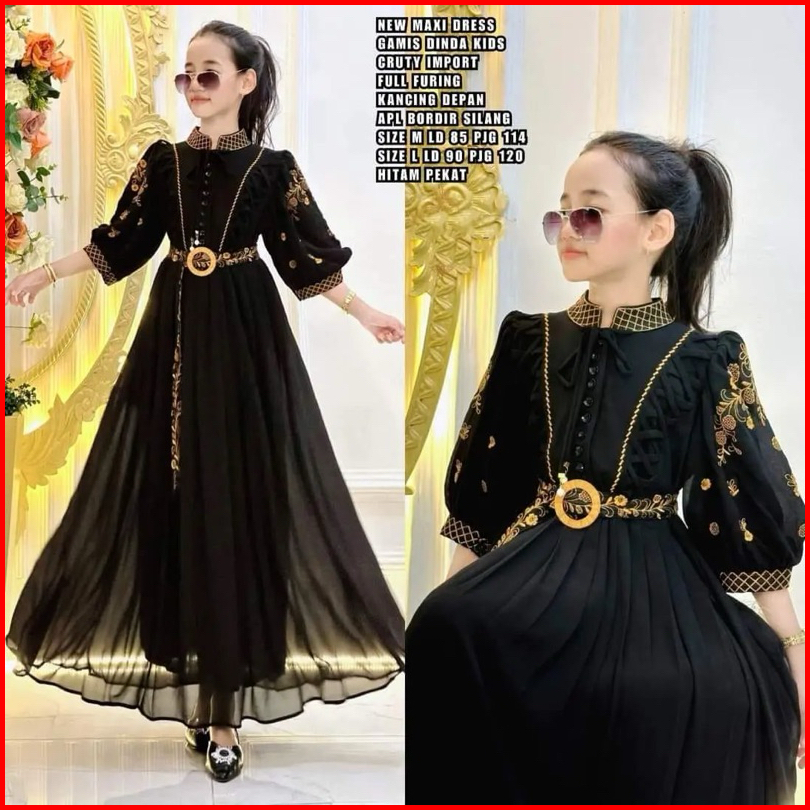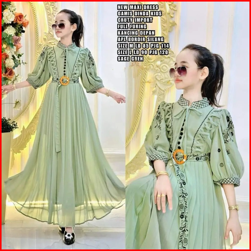 Dinda Kids Usia 9-15 Tahun Gamis Anak Remaja Perempuan Muslim Bahan Ceruty Bordir Baju Lebaran Anak Tanggung Size M L Xl