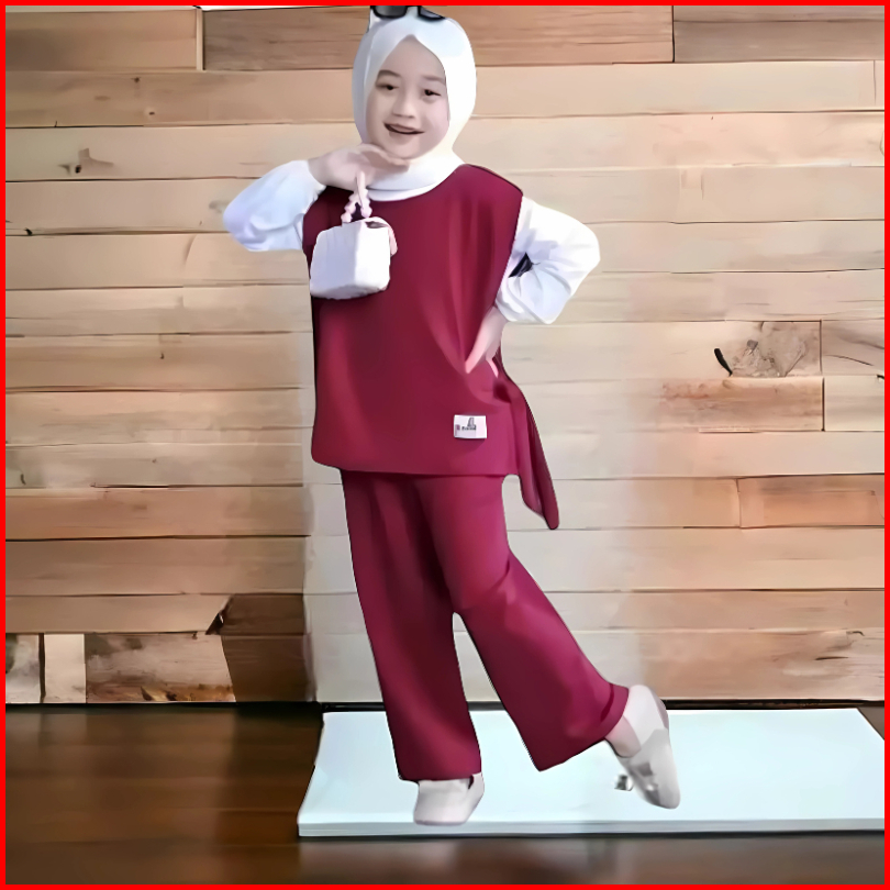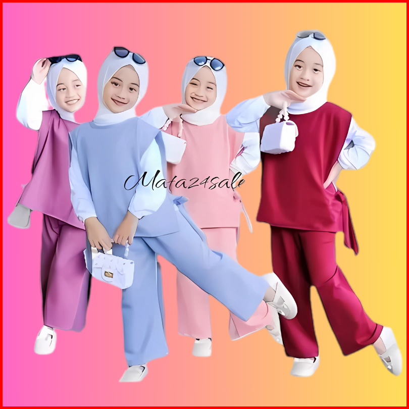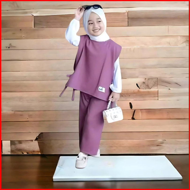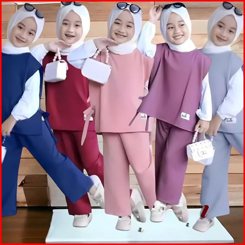 Baju Muslim Anak Perempuan Chika Usia 3-12 Tahun Model 3in1 Setelan Anak Tanpa Kerudung