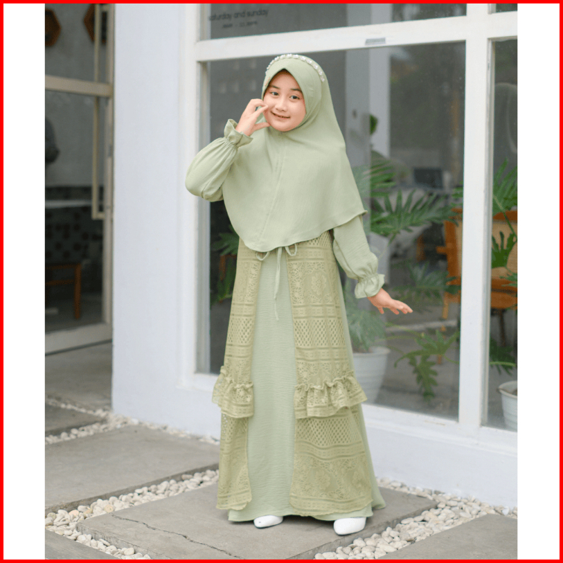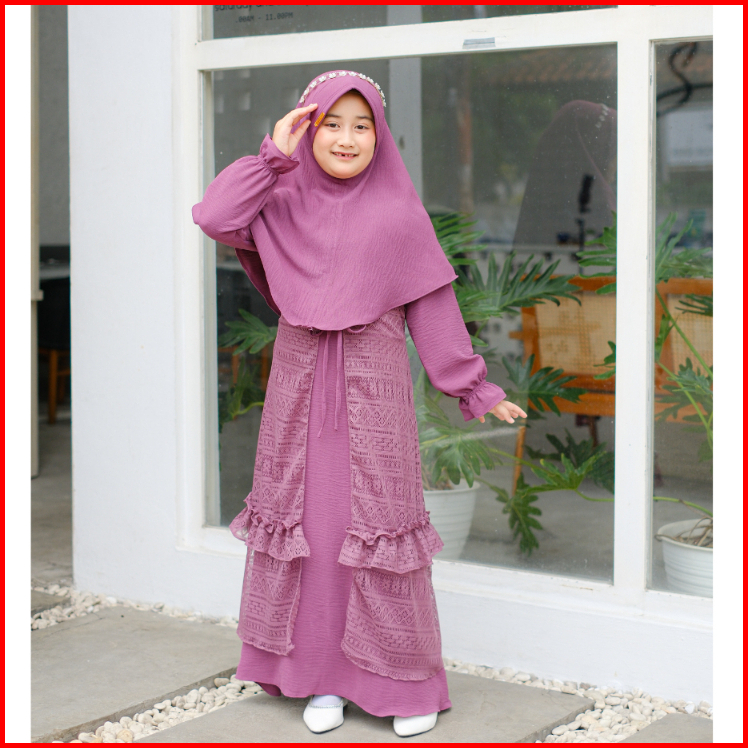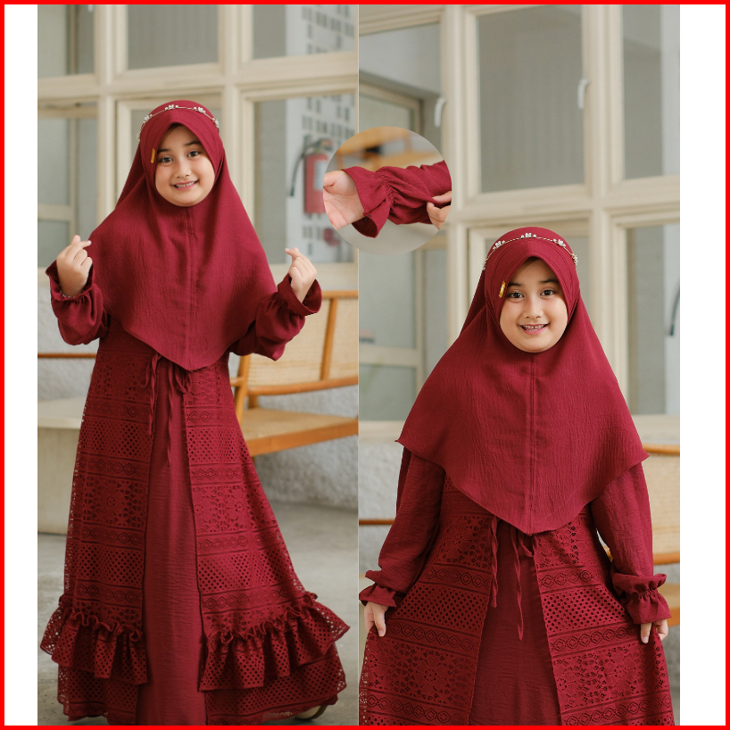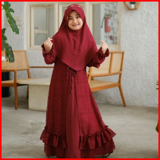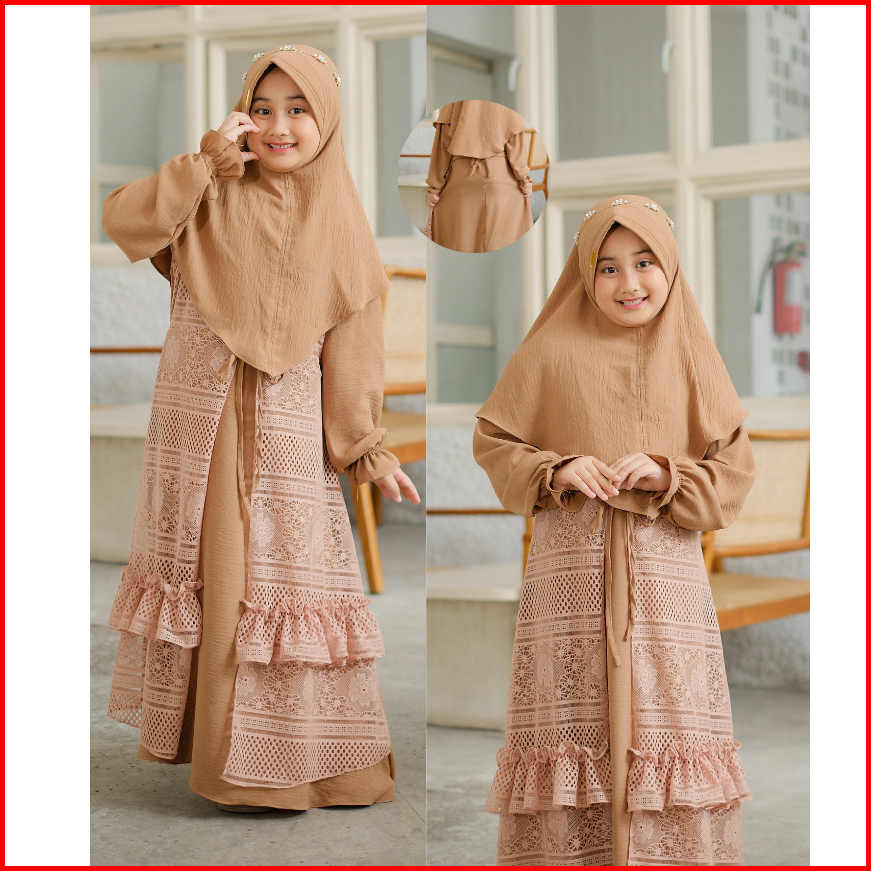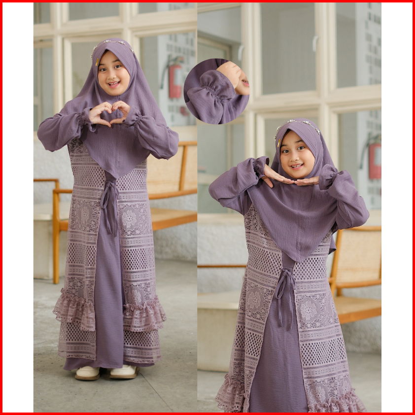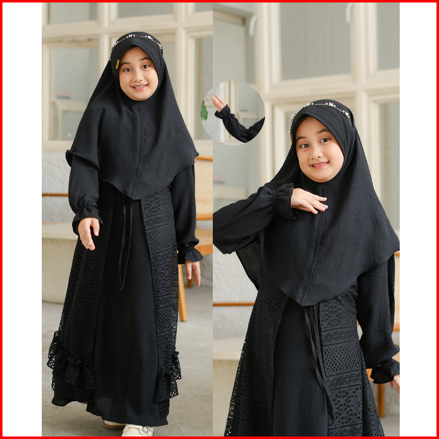 Gamis Anak Perempuan Set Jilbab Kombinasi Brukat 2-12 Tahun S M L Xl Xxl Gamis Terlaris Sekarang