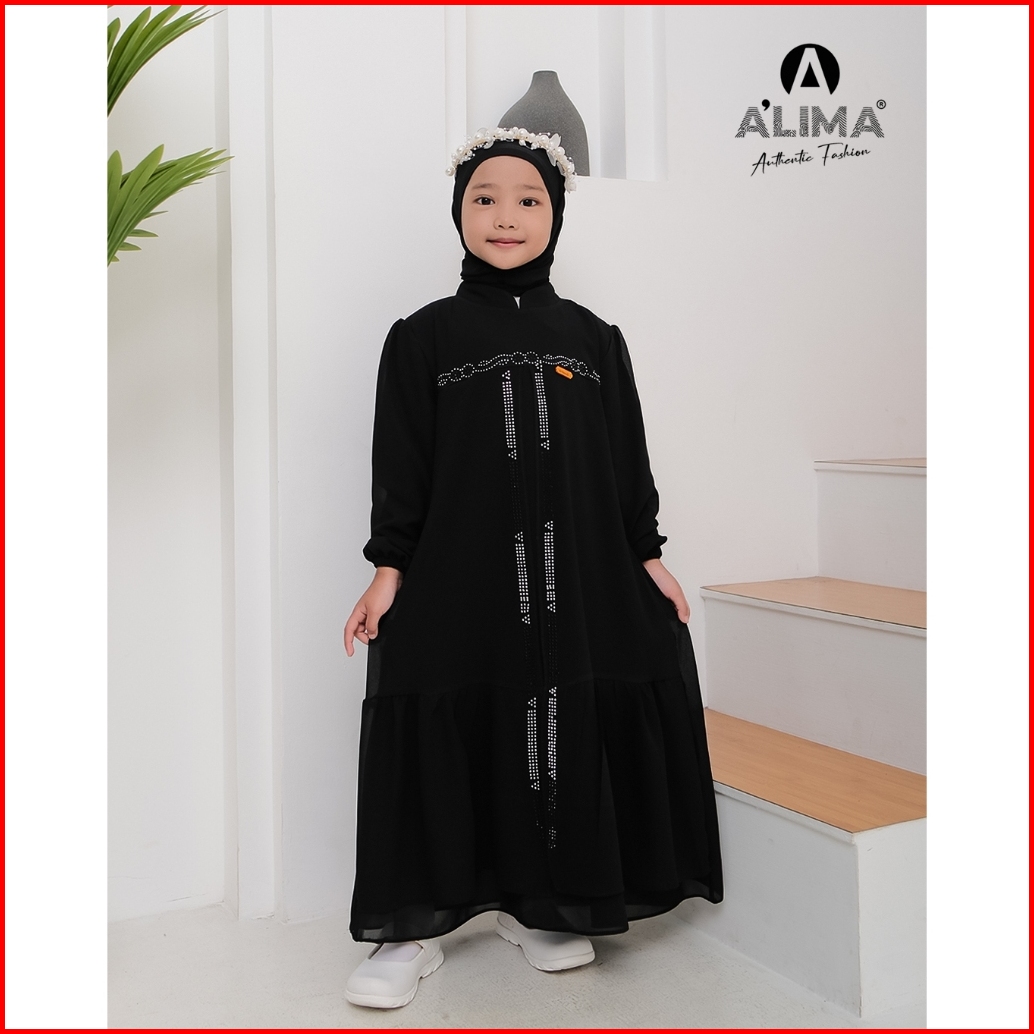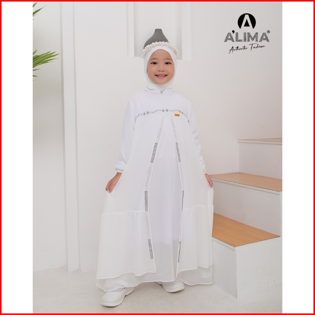 Angeelin Kids Phasmina Gamis Muslimah Anak Perempuan Dua Layer Bahan Ceruty Bebydoll Usia 3-13 Tahun