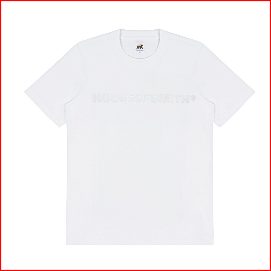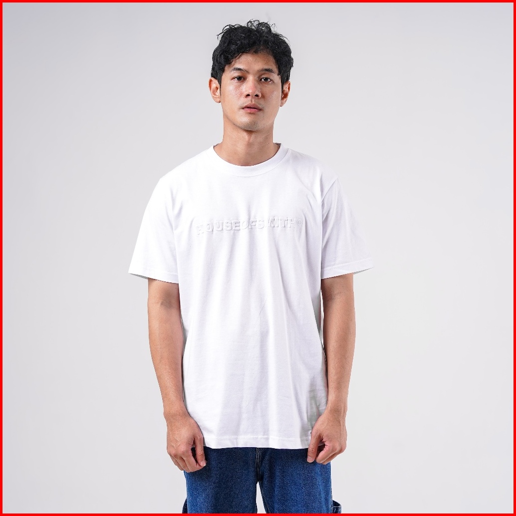 House Of Smith Kaos Pria Lengan Pendek - Lt White On White Embos 9 - T Shirt
