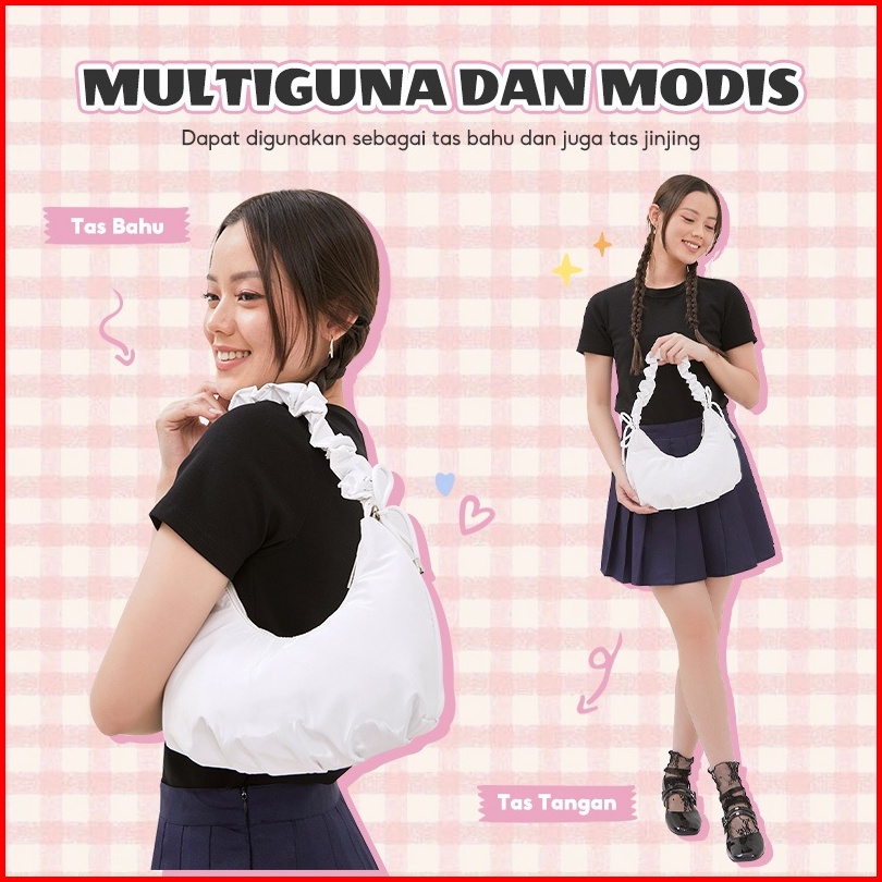 Ohsome Nomie Nomie Tas Bahu Glitter Awan Putih Pink Hitam