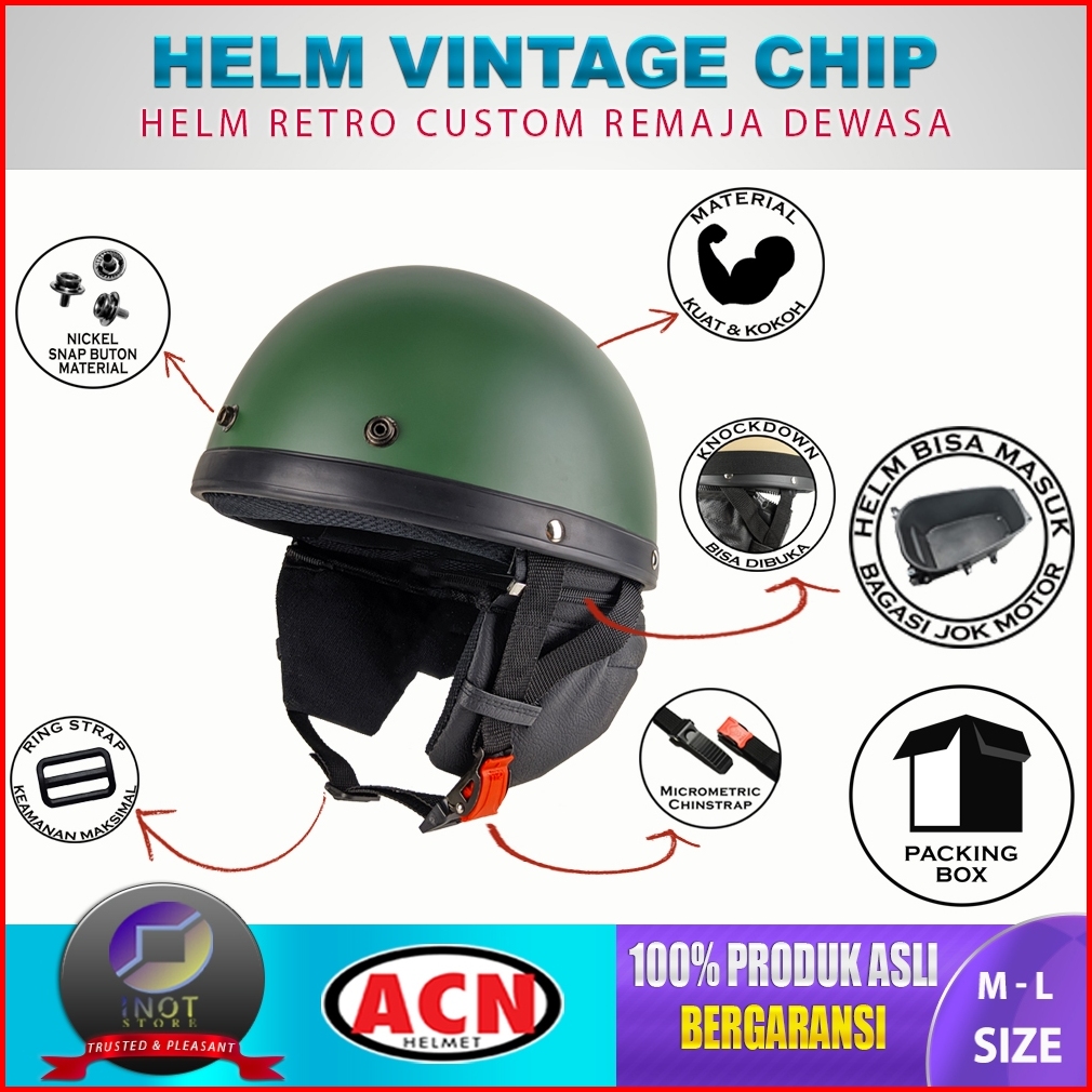 Helm Vintage Chips Knockdown Retro Custom Riding Busa Pipi Bisa Dilepas