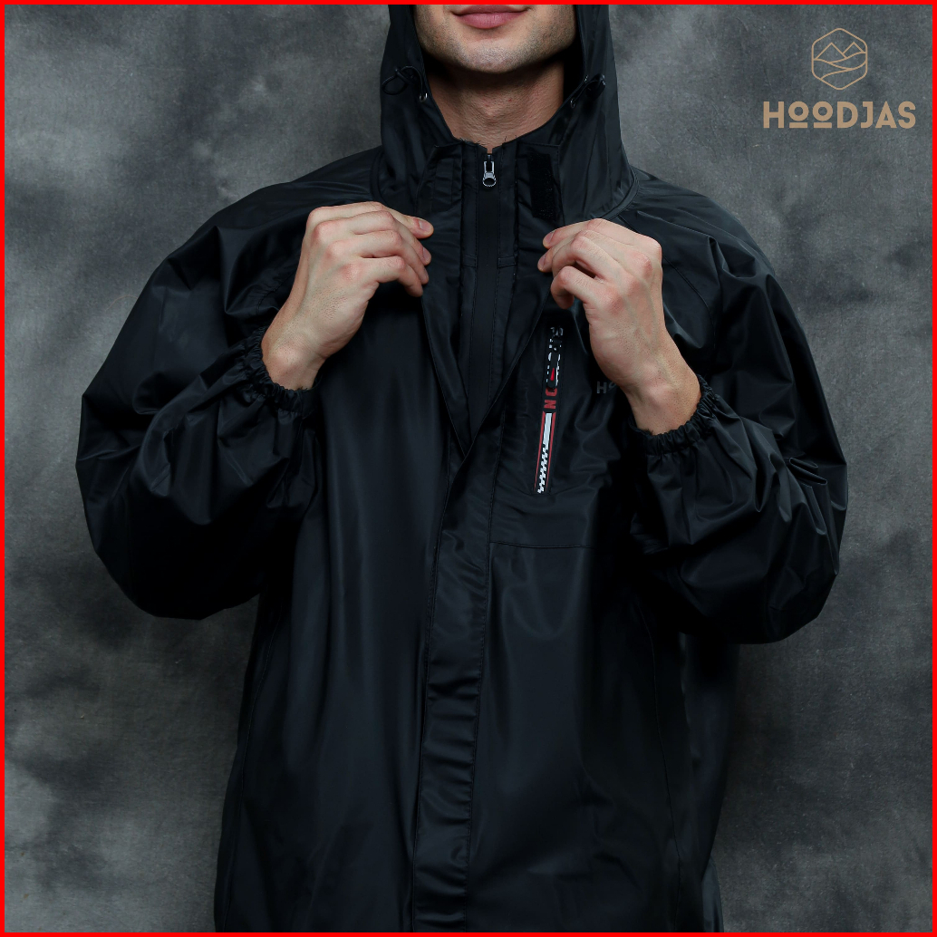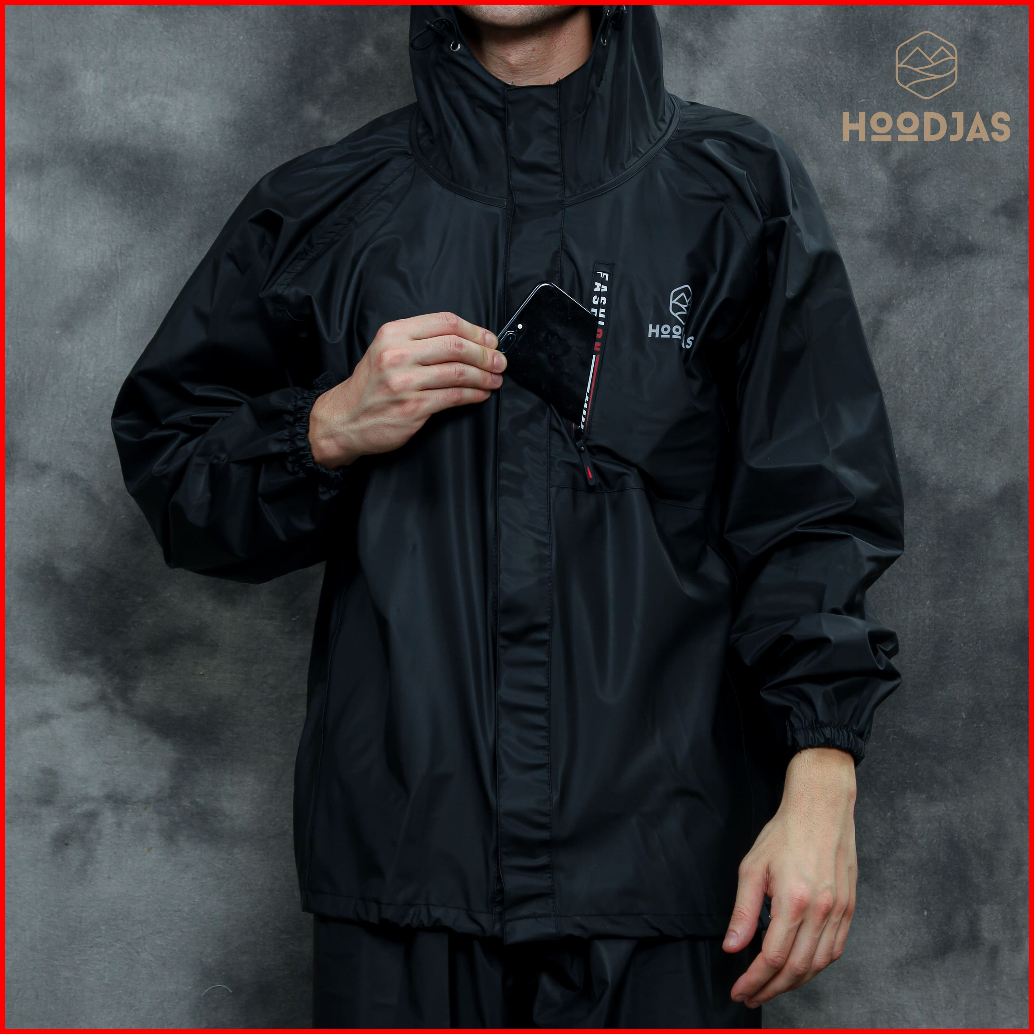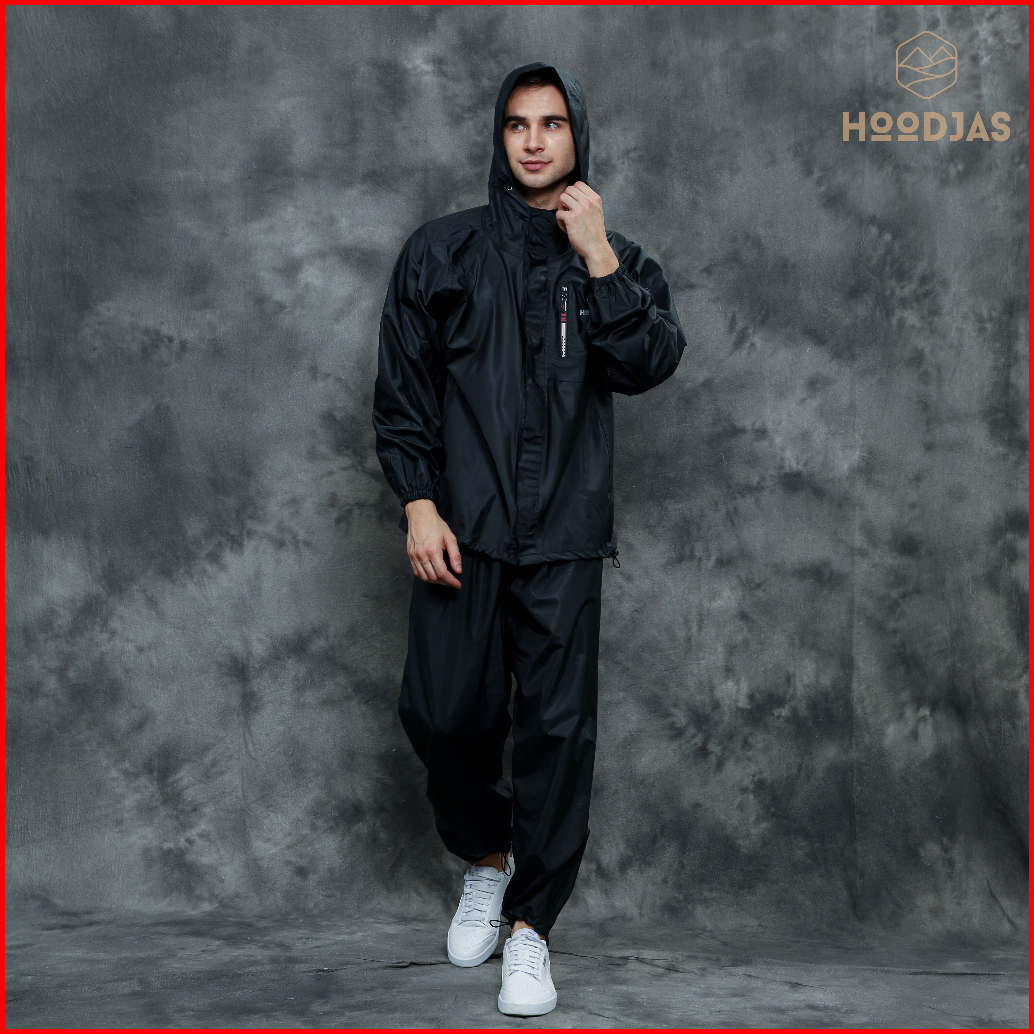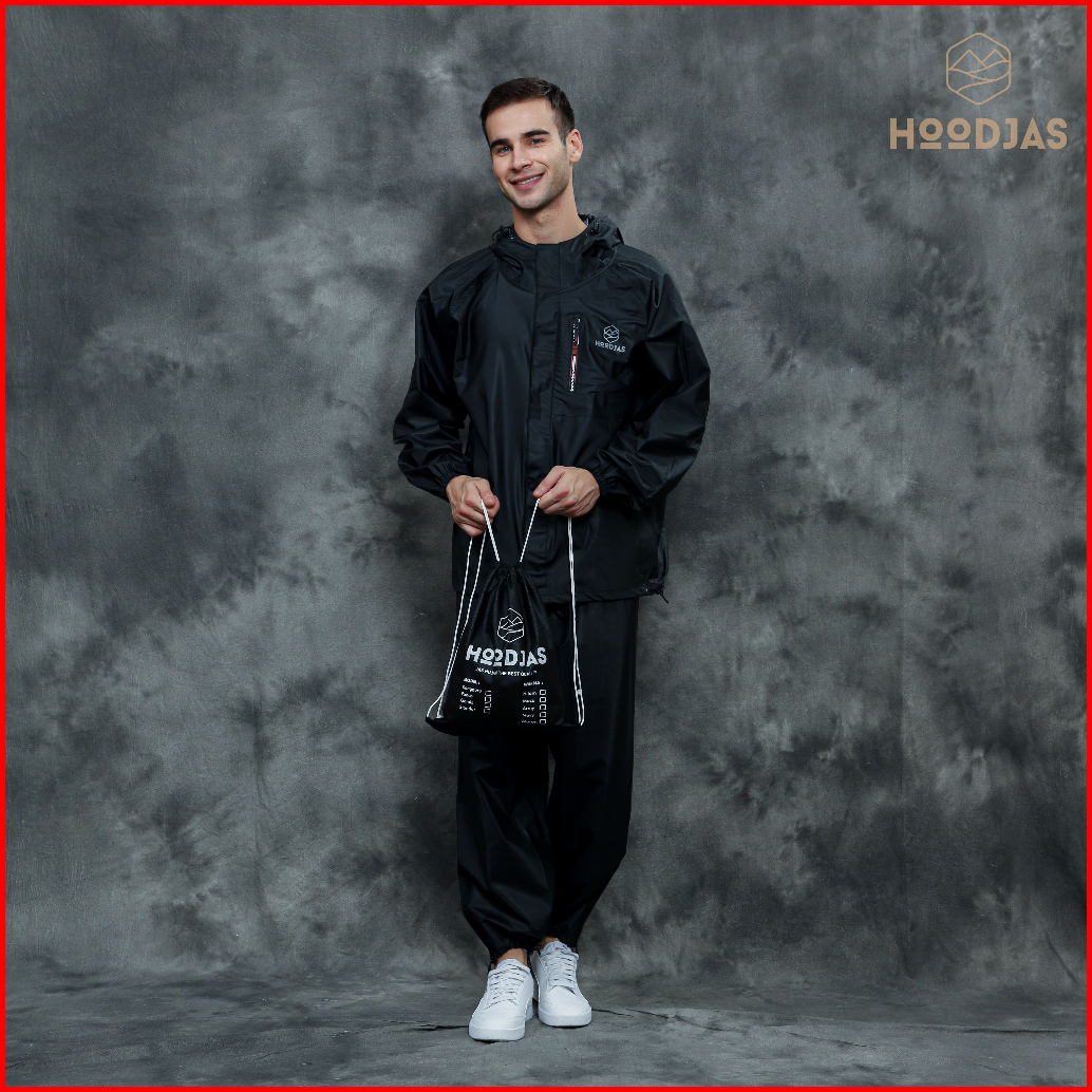 Hoodjas Jas Hujan Raincoat Ransel Backpack Pria Wanita Bahan Pvc Warna Hitam