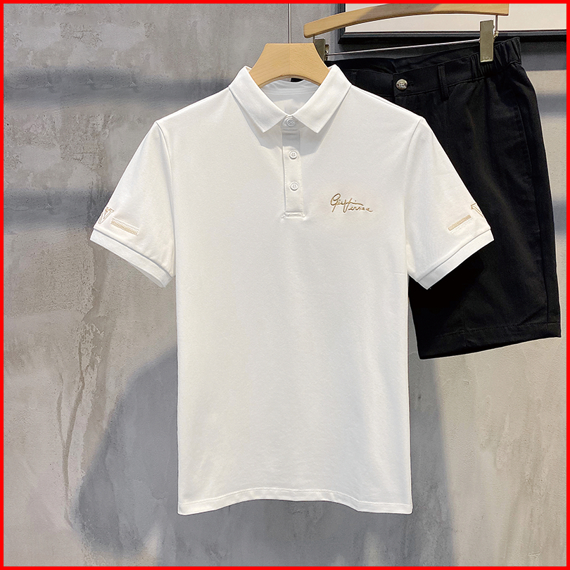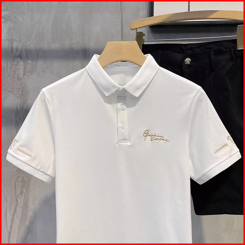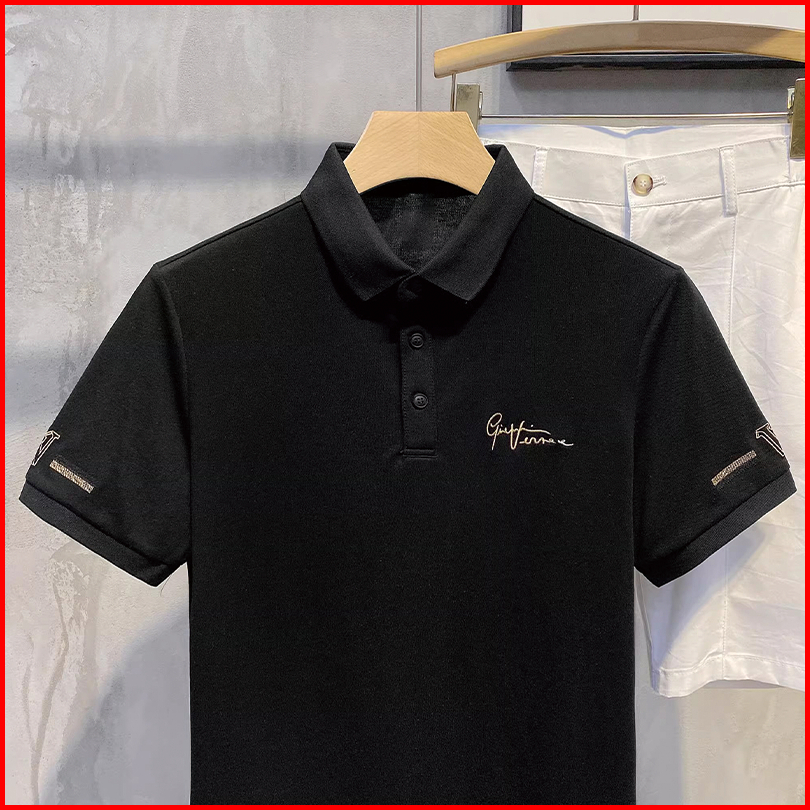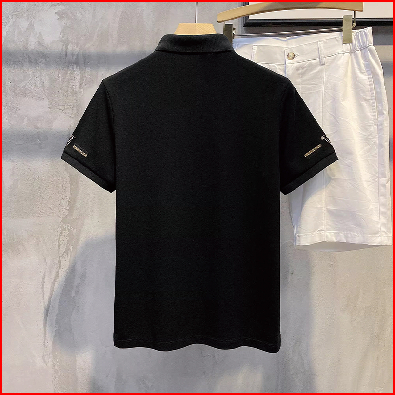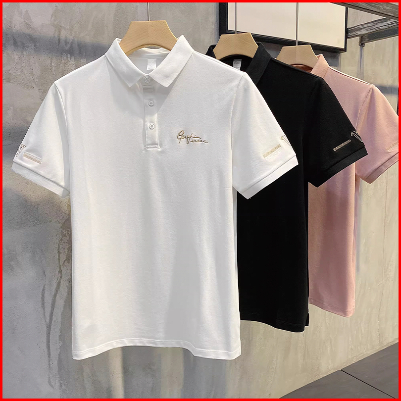 Polo Shirt Pria Hitam Slimfit Stretch Dewasa Cowok Korean Style Nygman Kemeja Kerah Stand Bordir Premium Kaos