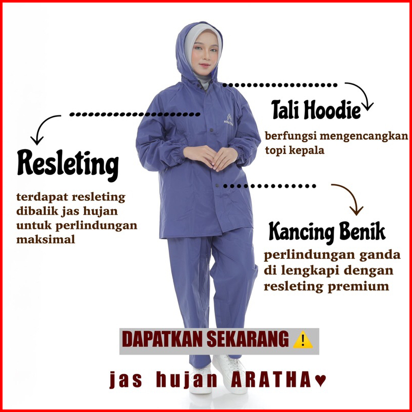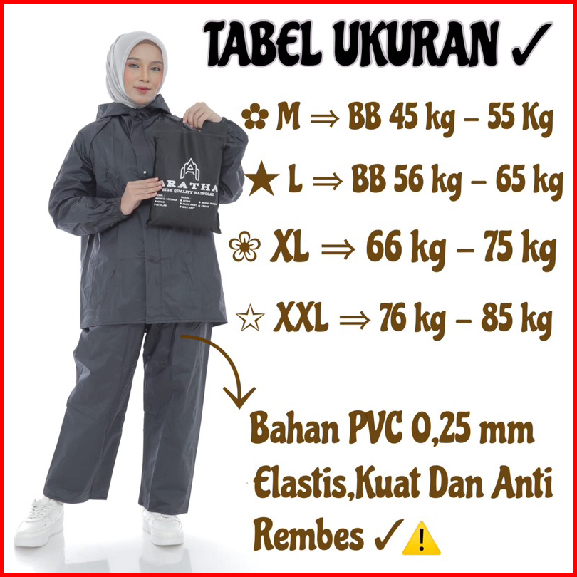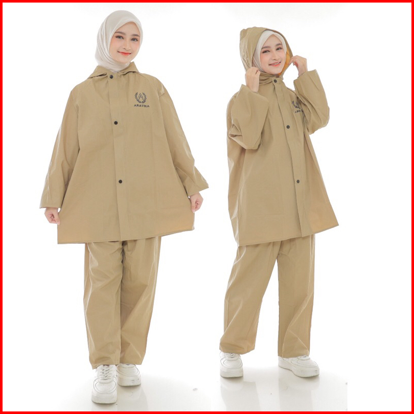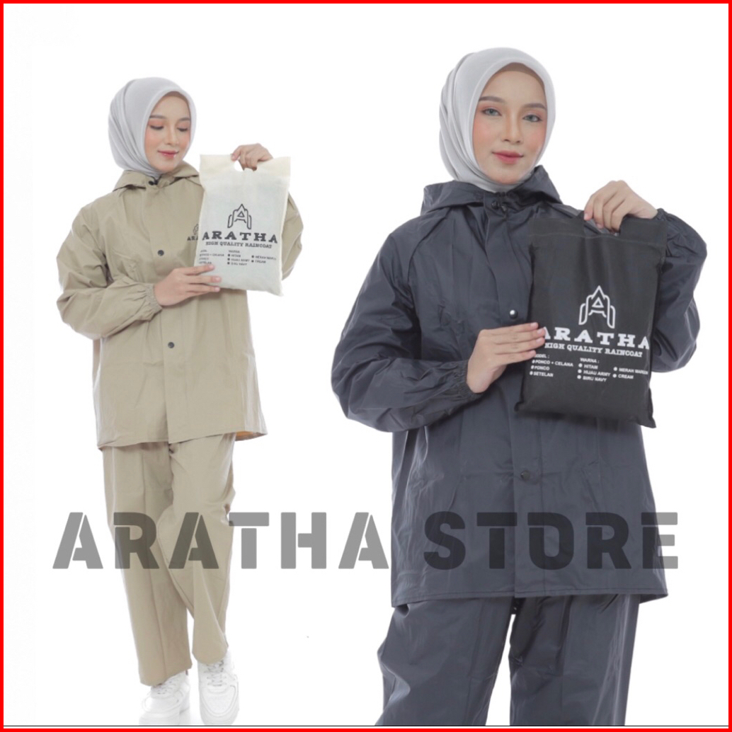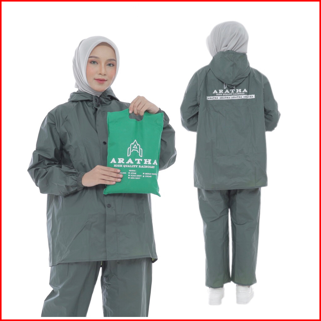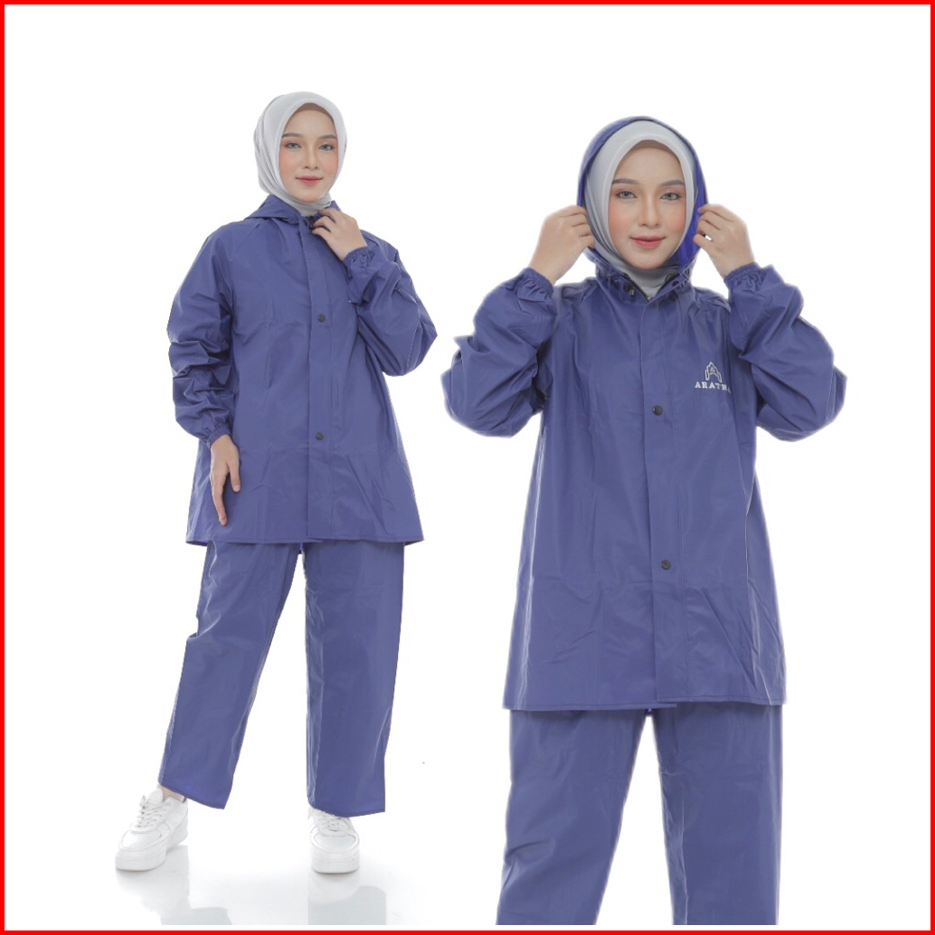 Jas Hujan Aratha Dewasa Mantel Hujan Baju Dan Celana Kain Pvc 0.25 Tebal Elastis