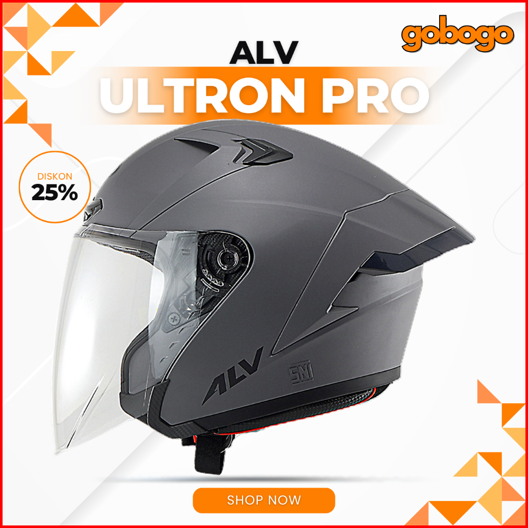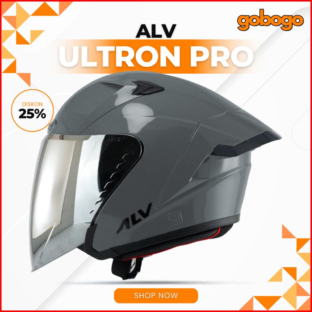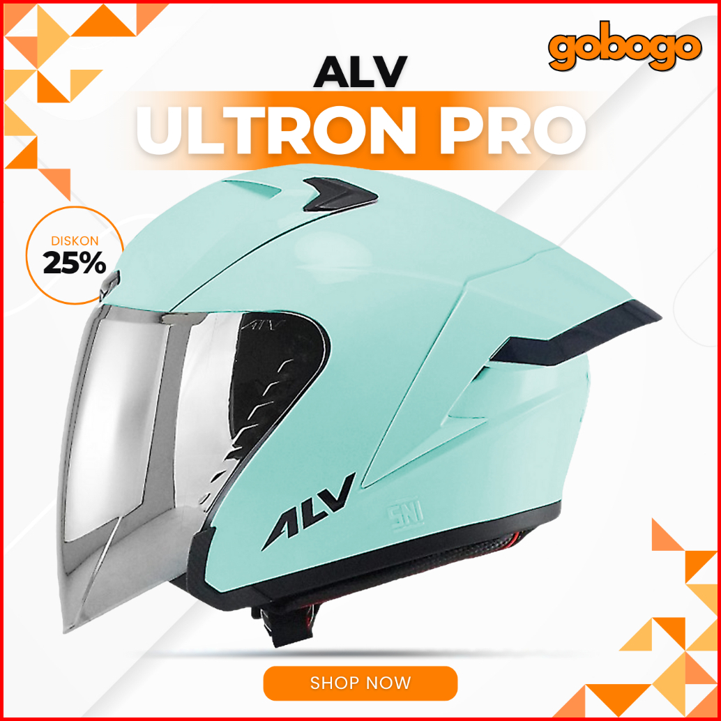 Helm Half Face Alv Ultron Pro Solid Single Visor Helm Motor Pria Wanita Dewasa Sni Original