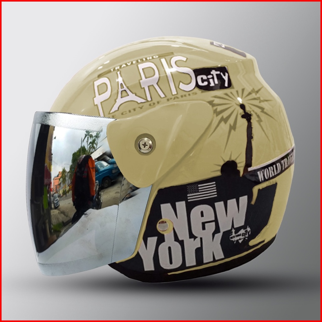 Helm Motor Half Face Dewasa Evolution Motif Seperti Helm Gm Original Murah Kaca Silver Kaca Pelangi Premium Untuk Pria D