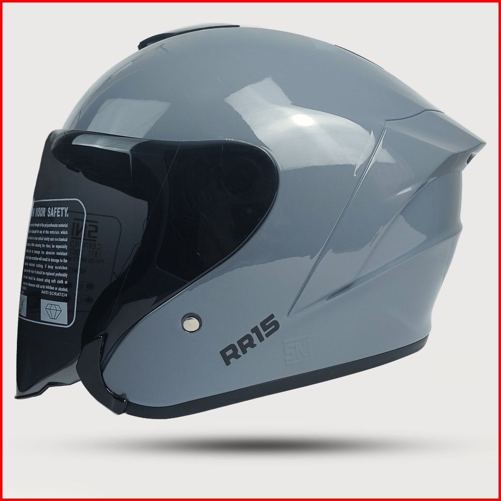 Helm Half Face Nfj-kairoz 2 Rr15 Solid Premium Grey Dof Visor Smoke Dewasa Pria Wanita Sni