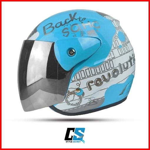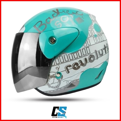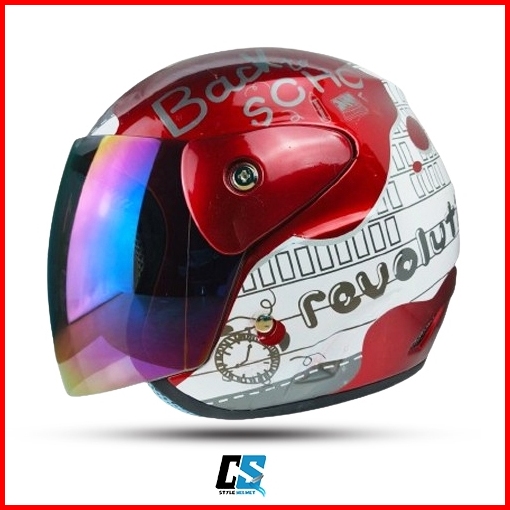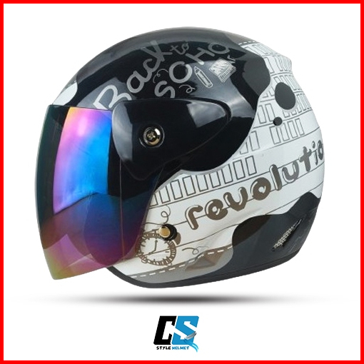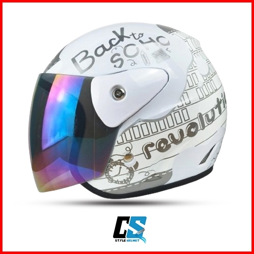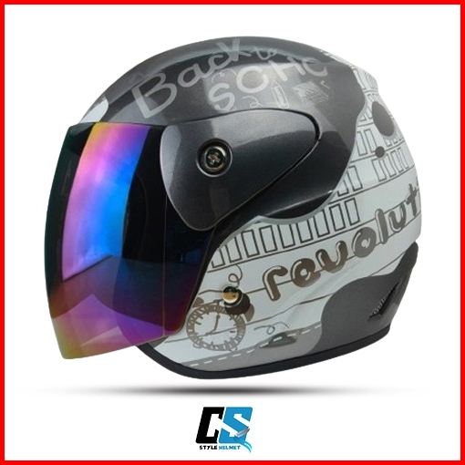Helm Half Face Evo Inovation White Model Gm Original Motif Revolution Kaca Silver Hitam Pelangi Helm Half Face Pria Wani