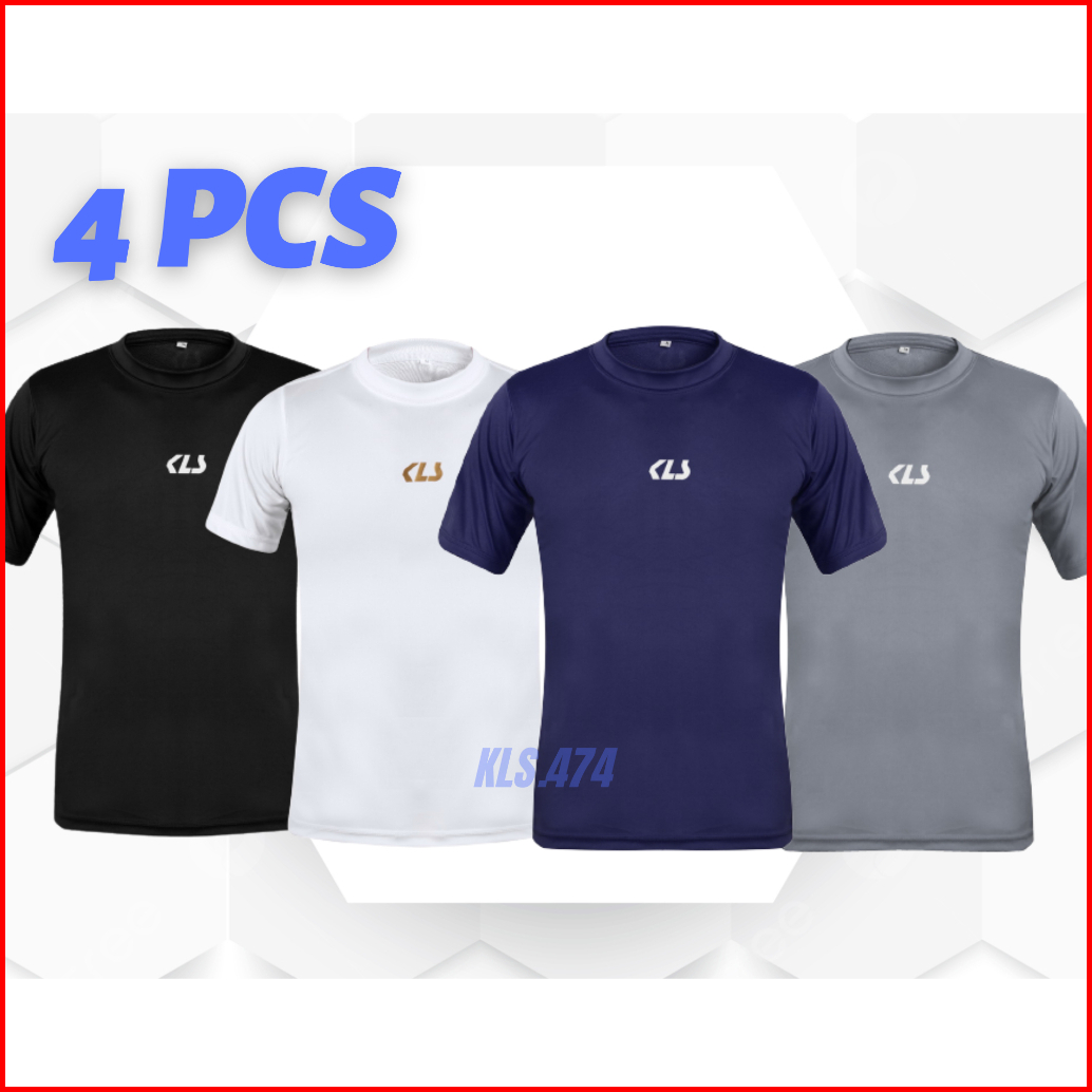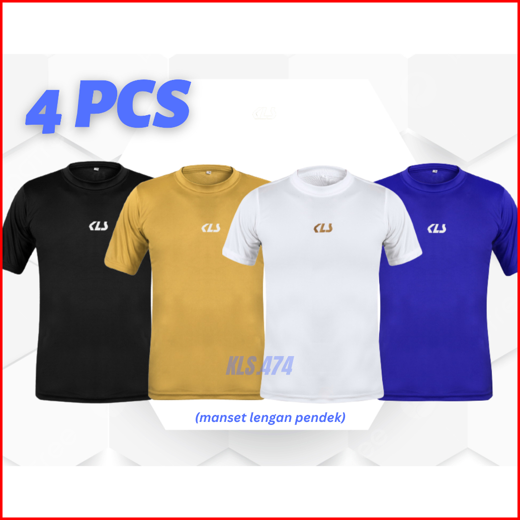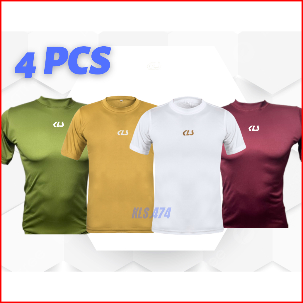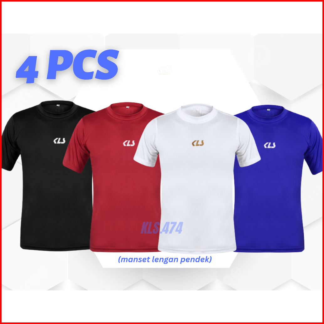 Paket 4pcs Manset Lengan Pendek Baju Olahraga Gym Pria Wanita Baselayers Kls