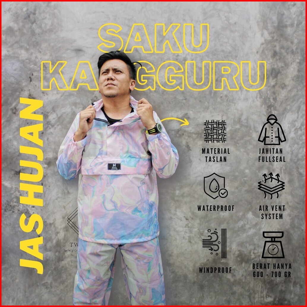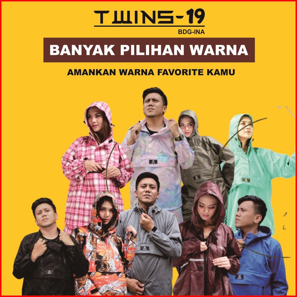 Jas Hujan Twins19 Jas Hujan Pria Wanita Dewasa Anti Air Bahan Taslan Import Raincoat Model Kangaroo