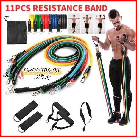 Charmant Tali Resistensi Kekuatan Baru 11 Buah Set Tali Karet Peralatan Latihan Kebugaran Yoga Gym Bahu Dada