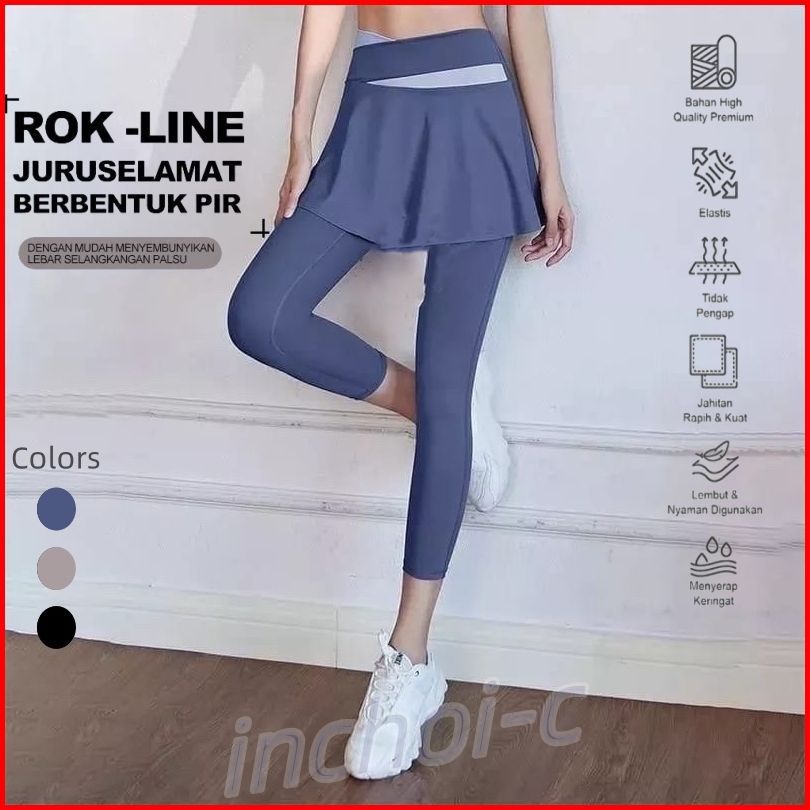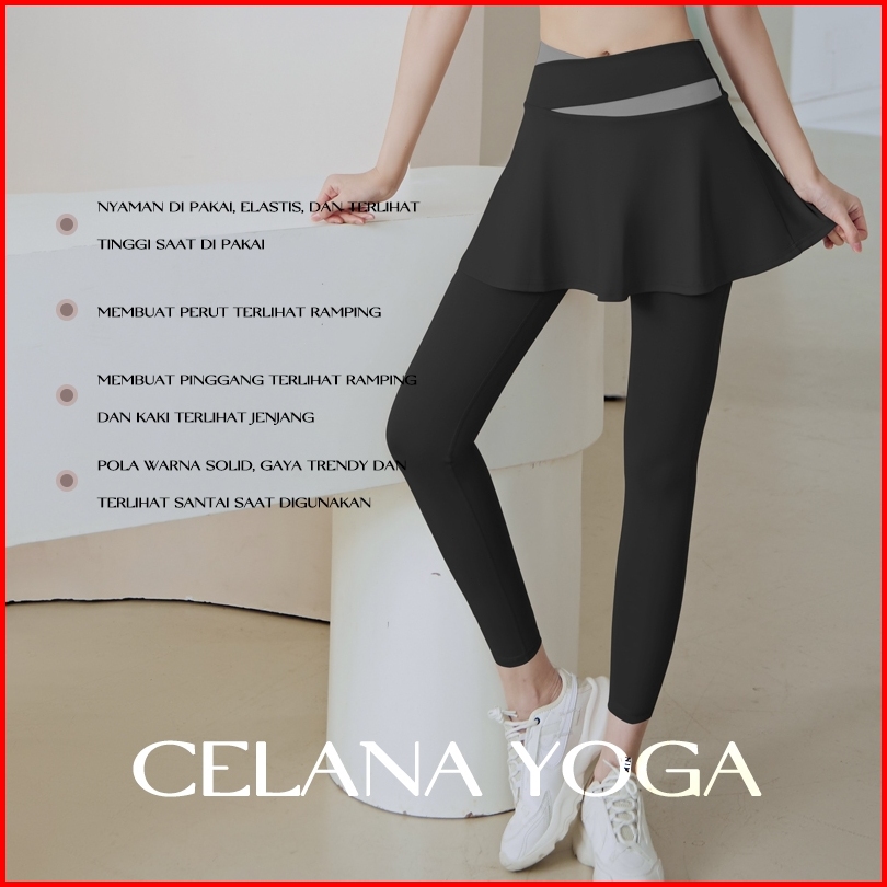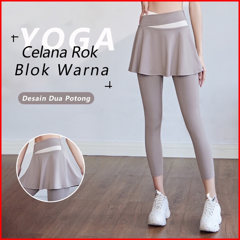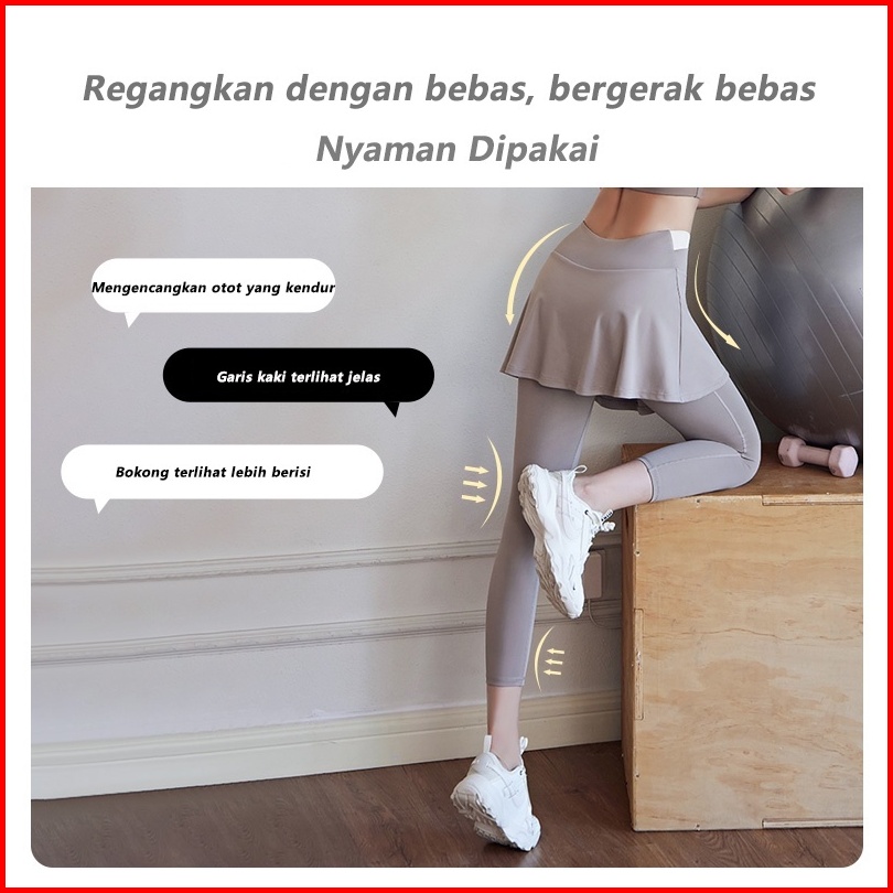 Legging Celana Rok Olahraga Wanita High Waist 2 In 1 Skirt Yoga Gym Running Sport