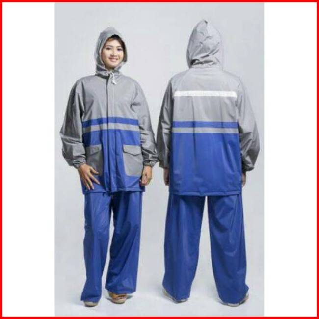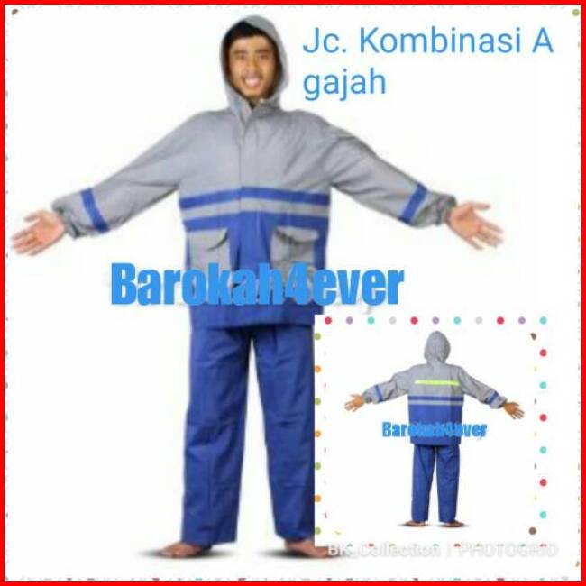 Jas Hujan Setelan Jaket Celana Kombinasi A Gajah Ibex Biru Silver