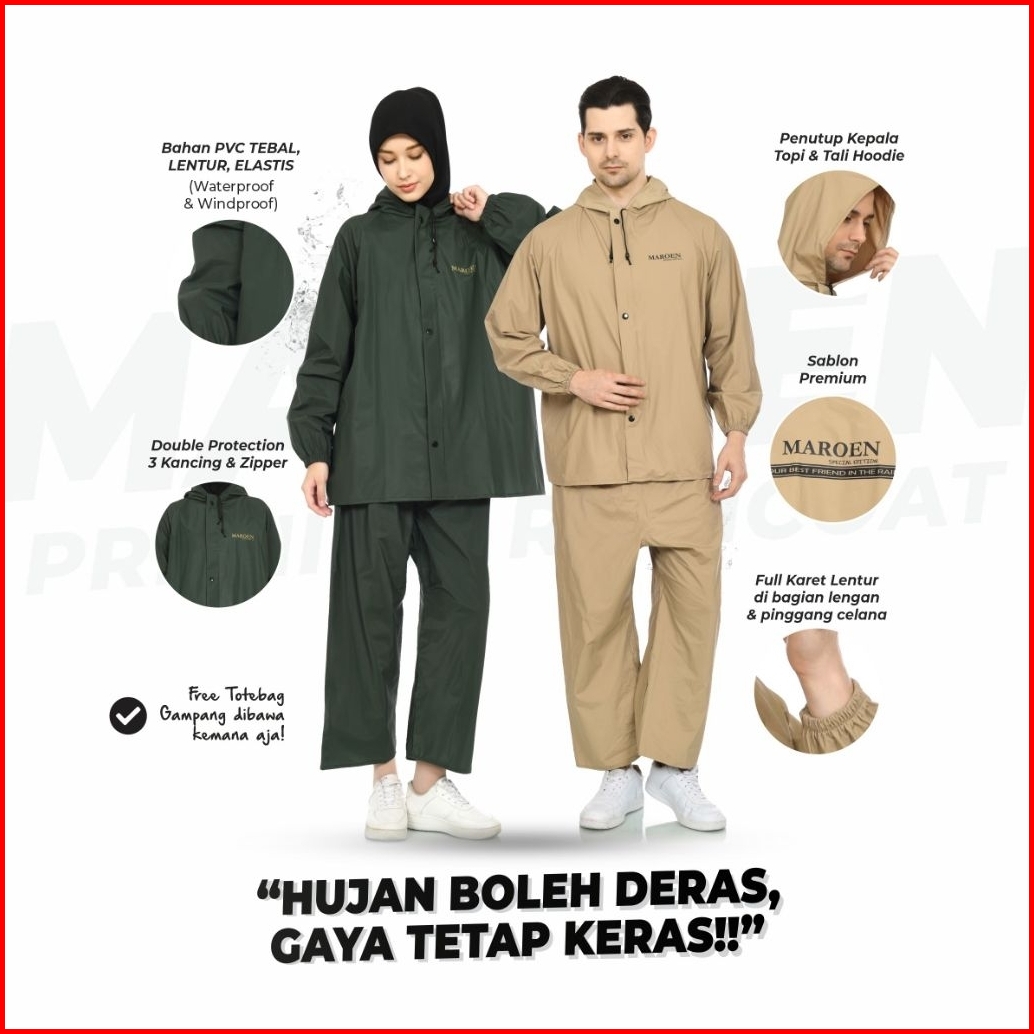 Jas Hujan Raincoat Setelan Jaket Celana By Maroen Bahan Pvc 0.25 Tebal Lentur Anti Rembes Celana Seal Press Axio