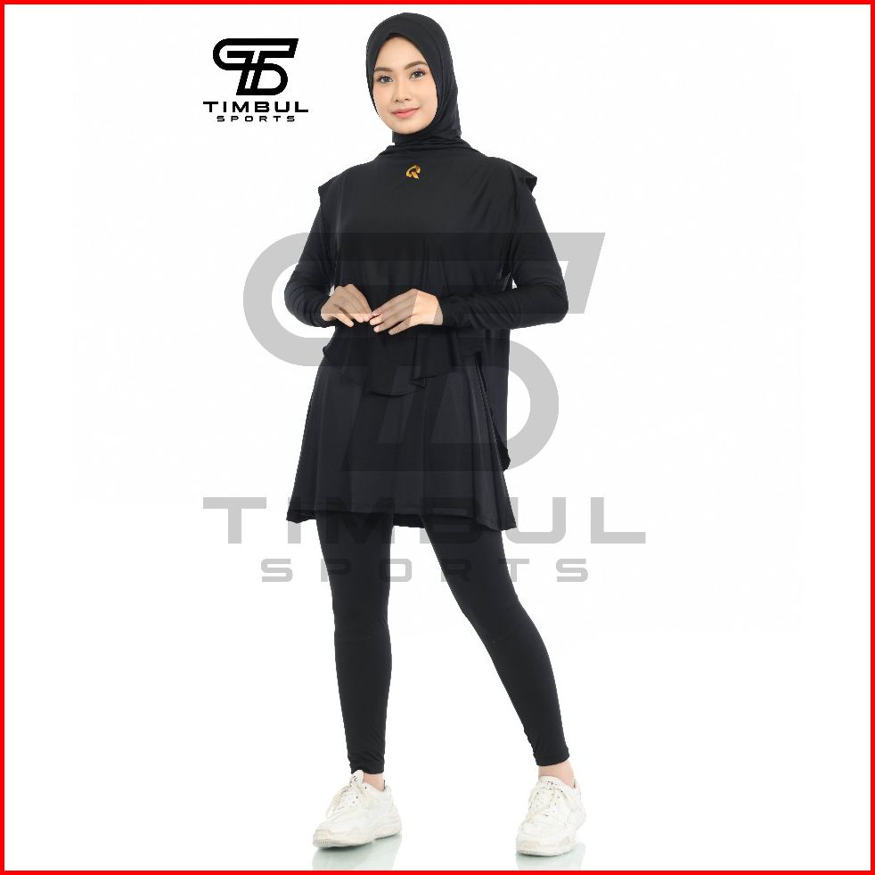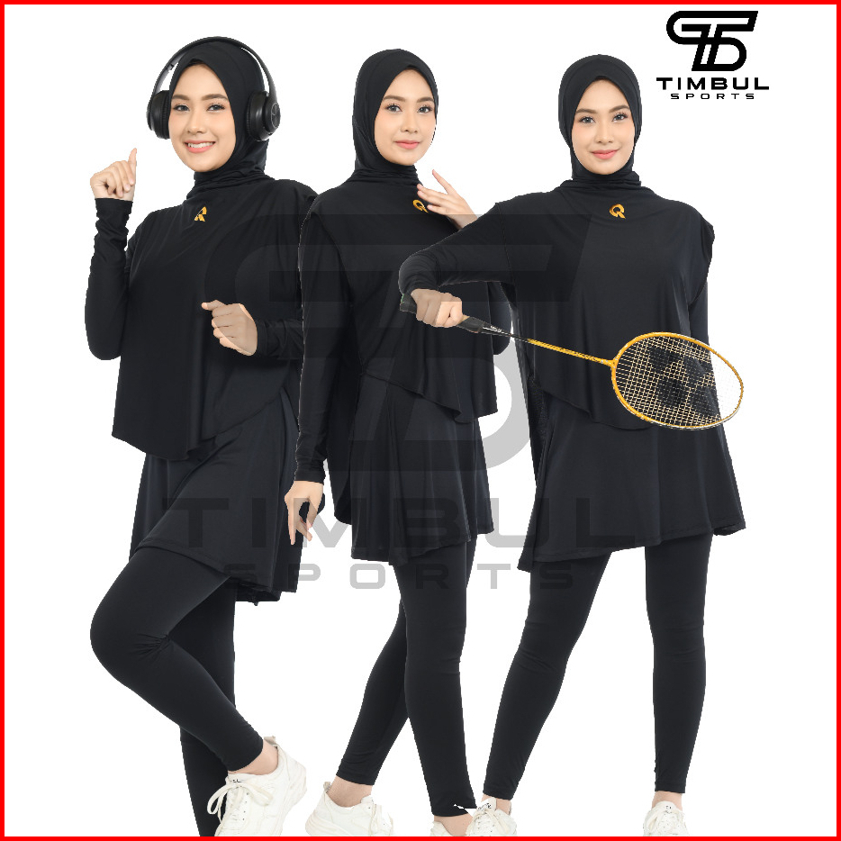 Stelan Baju Olahraga Wanita Muslimah Senam Renang Lari Bersepeda Legging Rok Hijab Rompi