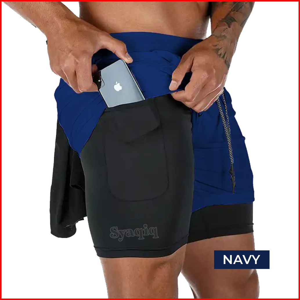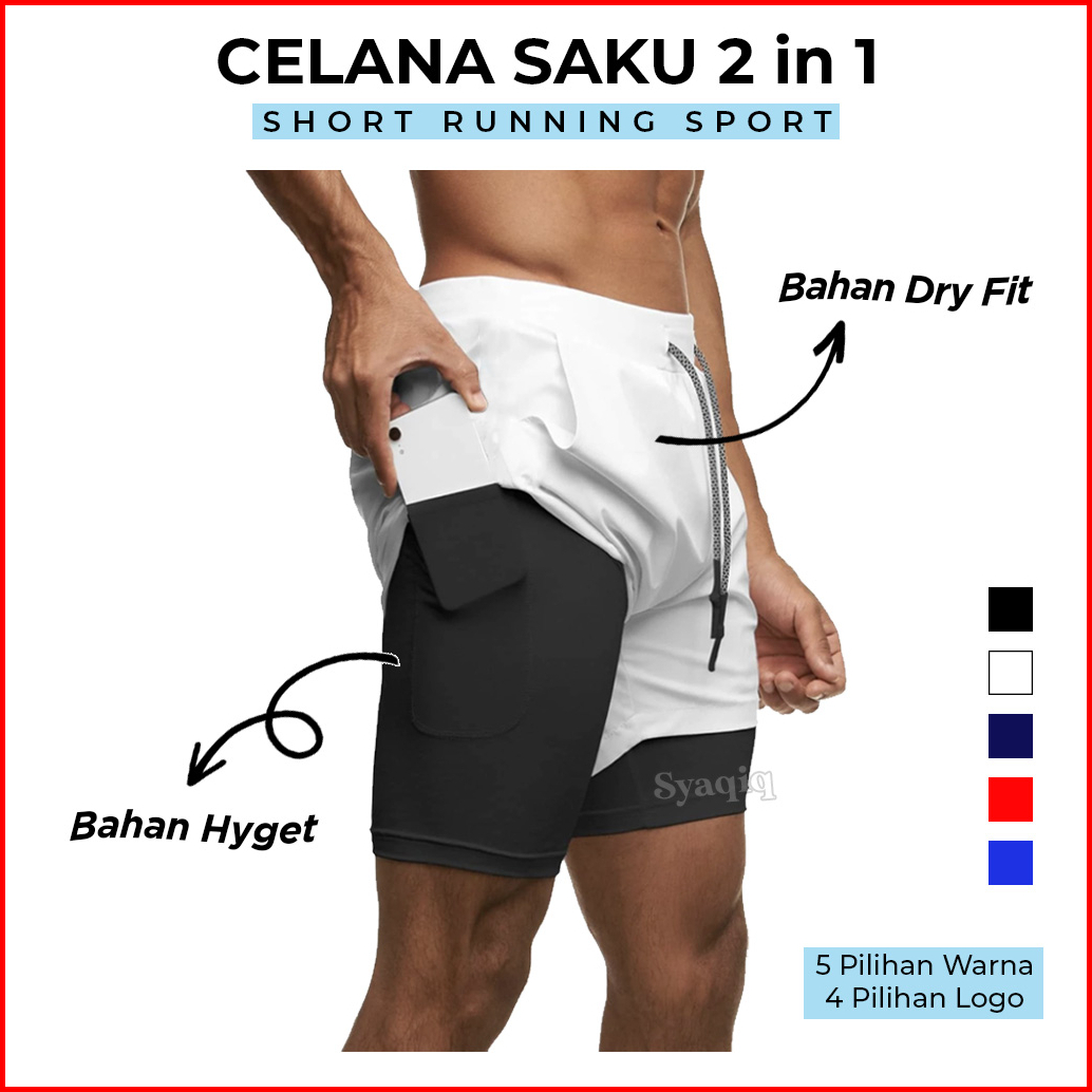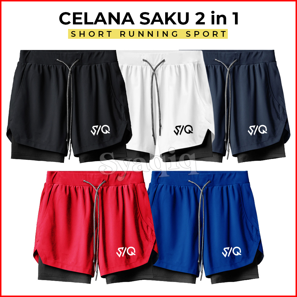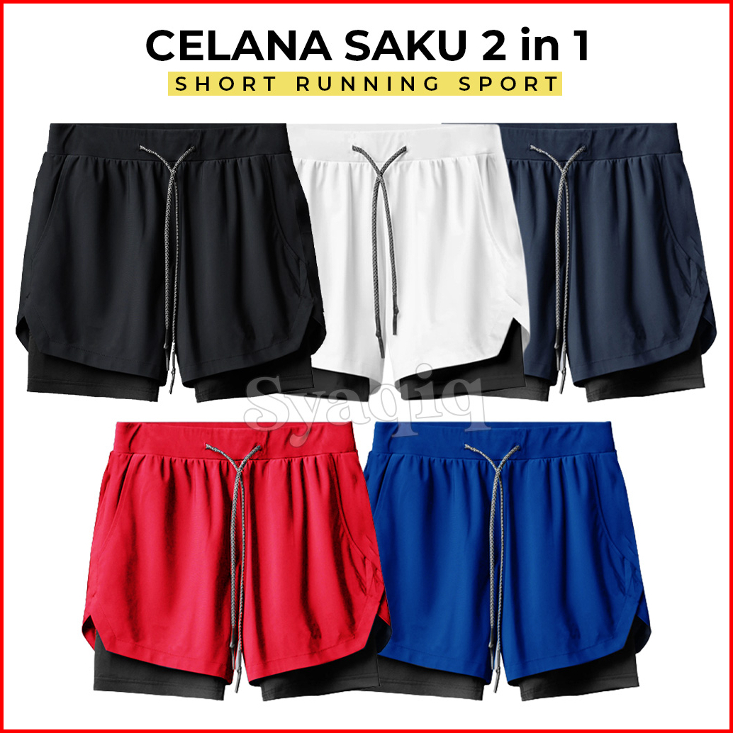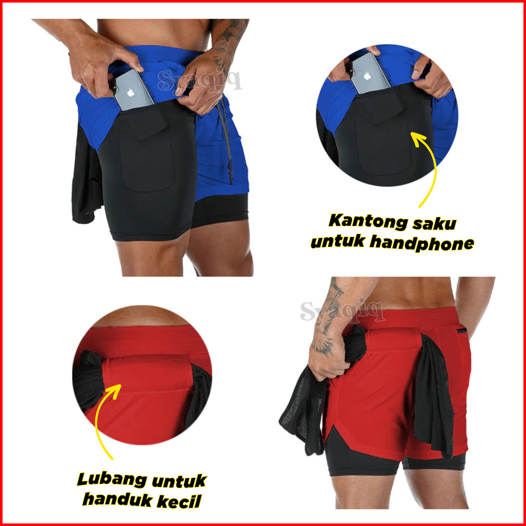 Celana Lari Pendek Saku Double Layer Olahraga Futsal Sepak Bola Jogging Badminton Voli