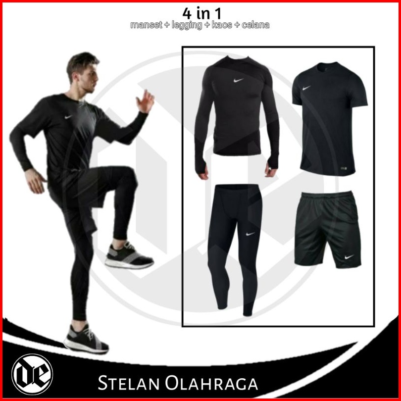Setelan Paket 4pcs Baju Jersey Olahraga Celana Legging Panjang Pria Wanita Set Manset Baselayer Panjang Celana Pendek Ol