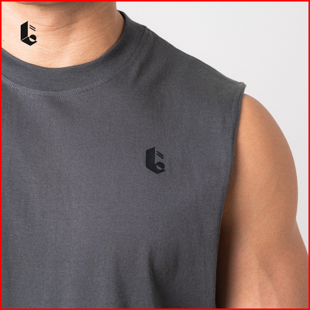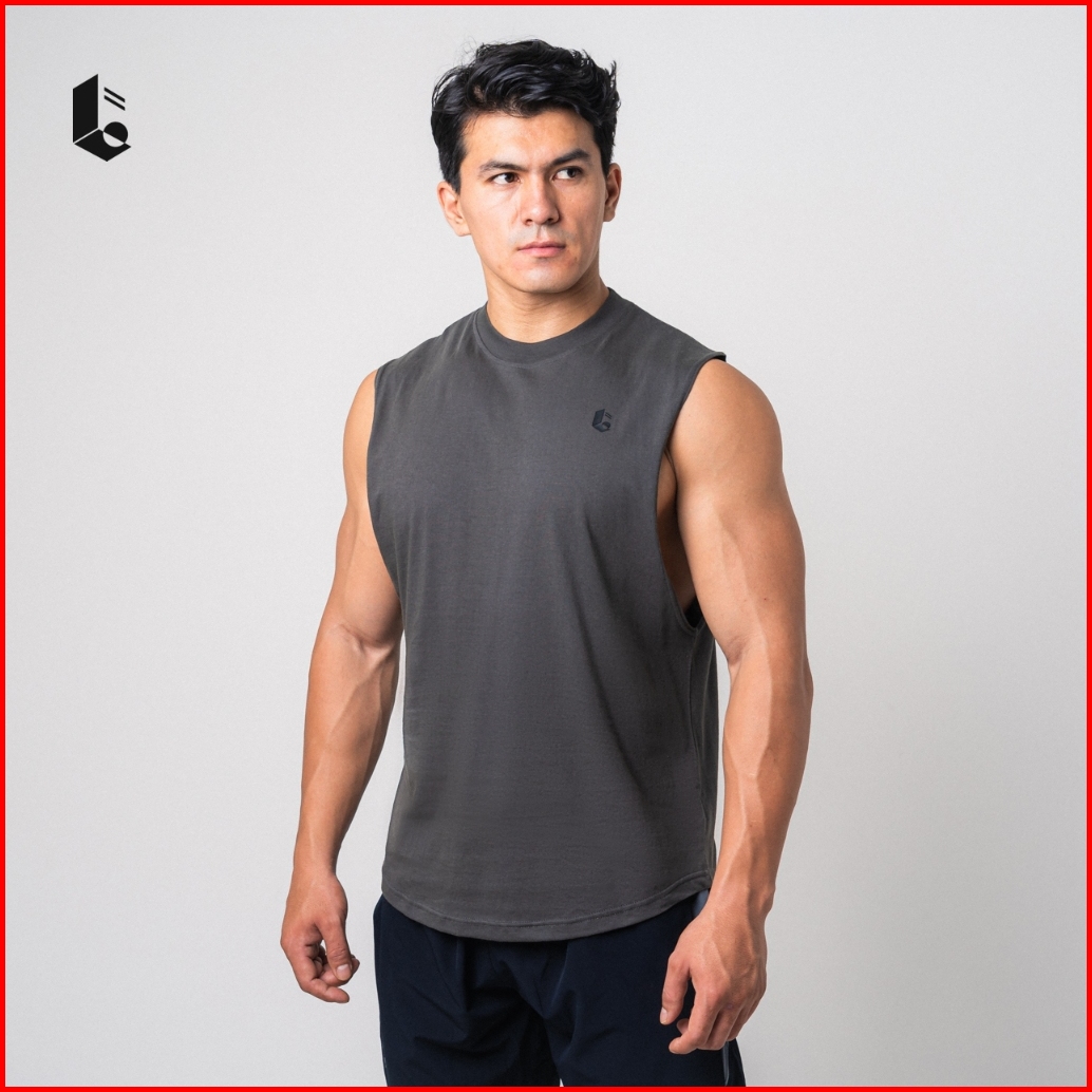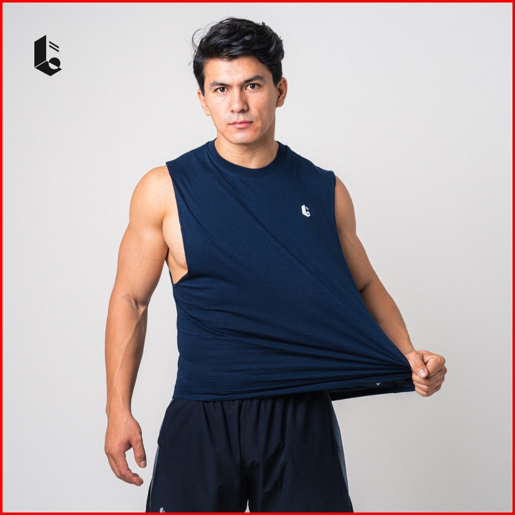 Lockerwear Tank Top Olahraga Pria Singlet Low Cut Kaos Katun Sleeveless Sport Gym Fitness Jogging Running Workout