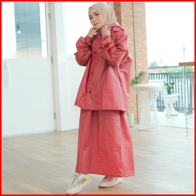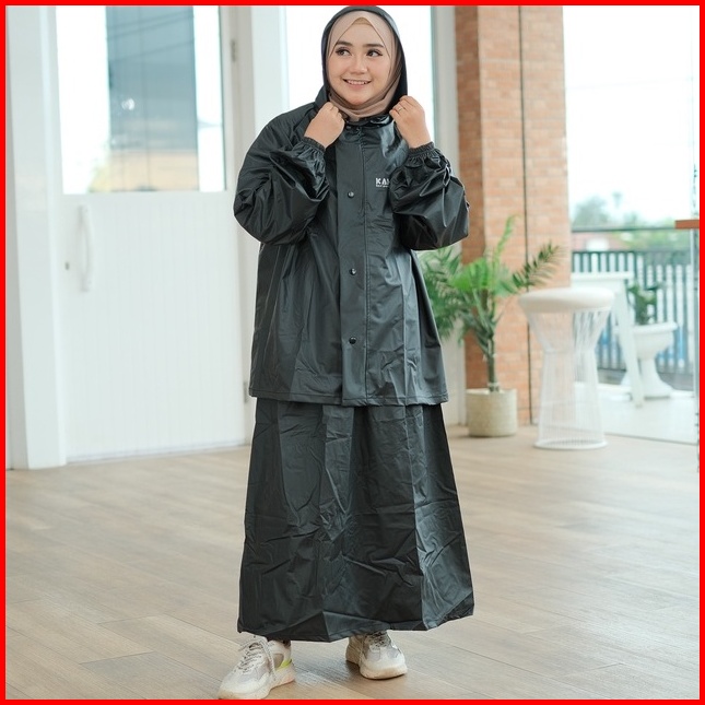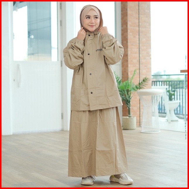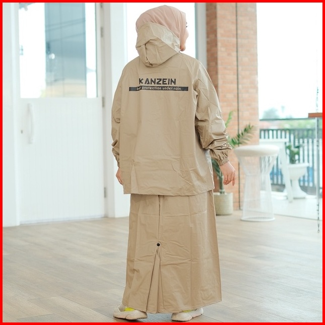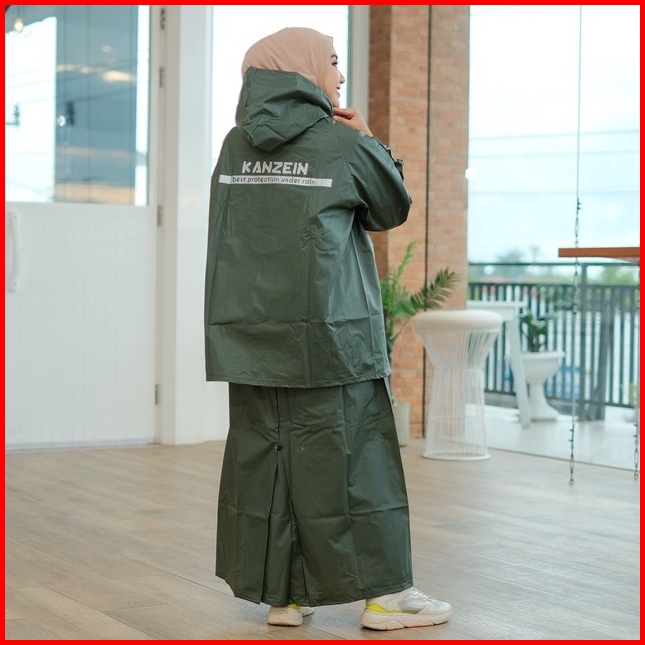 Kanzein Jas Hujan Wanita Rok Setelan Baju Dewasa Tebal Lentur Anti Rembes Tahan Air