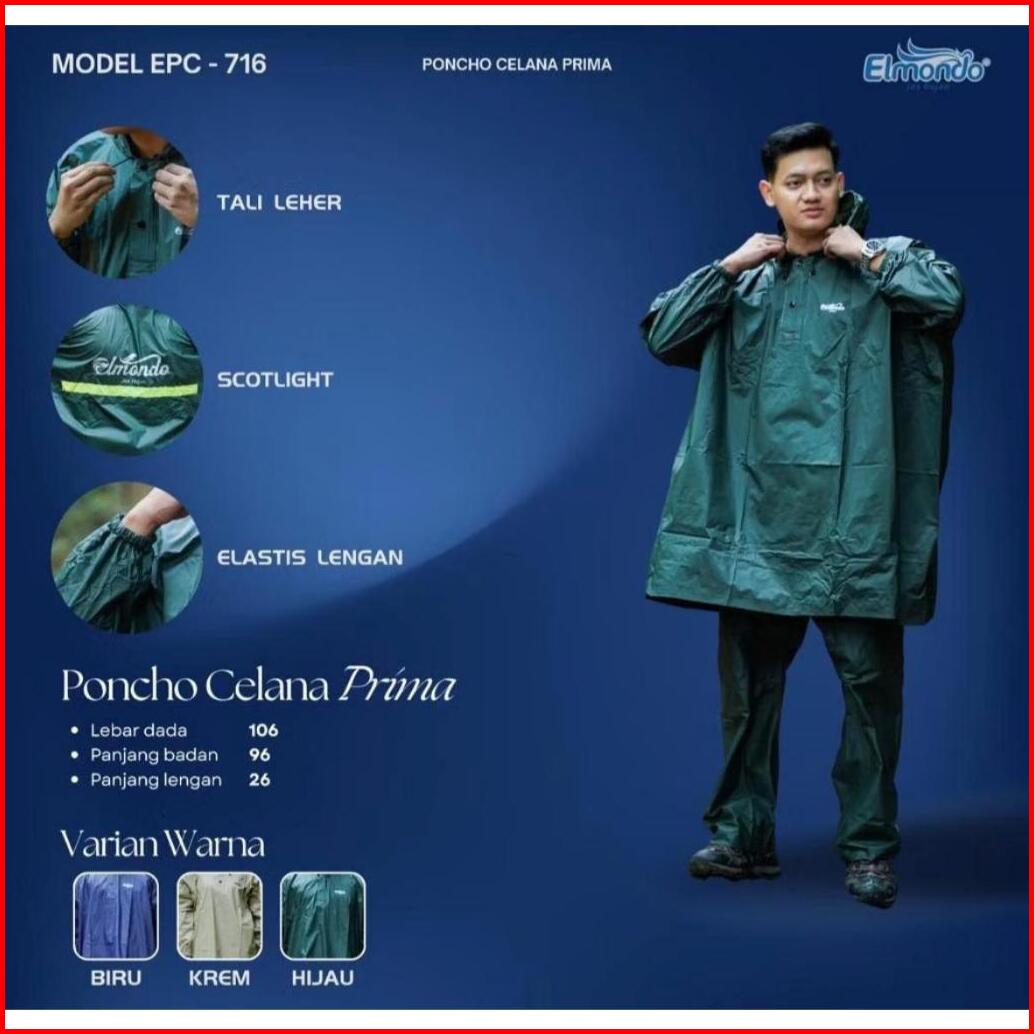 Elmondo Jas Hujan Pc-716 Jas Hujan Elmondo Prima Setelan Ponco Poncho Lengan Celana Dewasa Prima - Elmondo 716