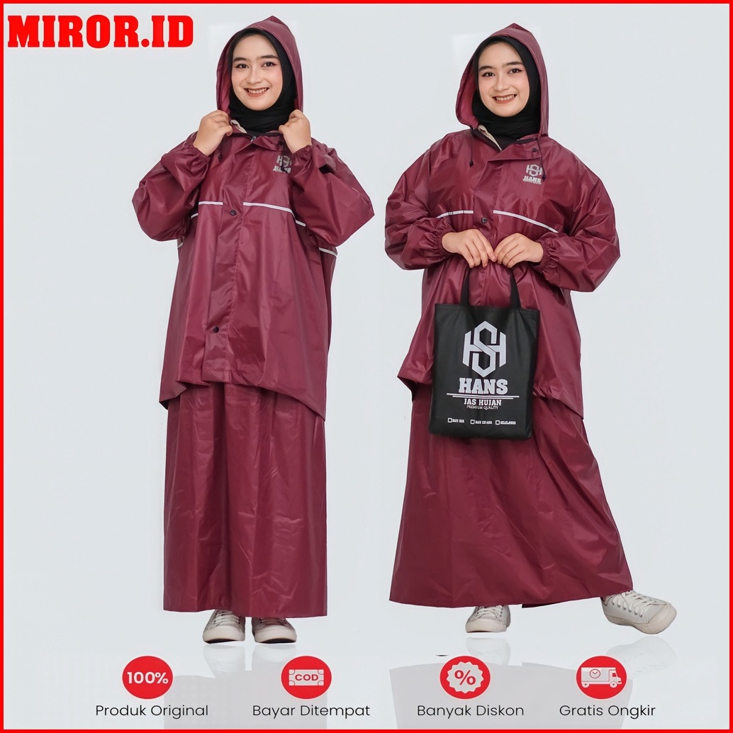 Jas Hujan Wanita Rok Mantel Hujan Setelan Baju Dan Rok Dewasa Bahan Tebal Kuat Anti Rembes By Hans