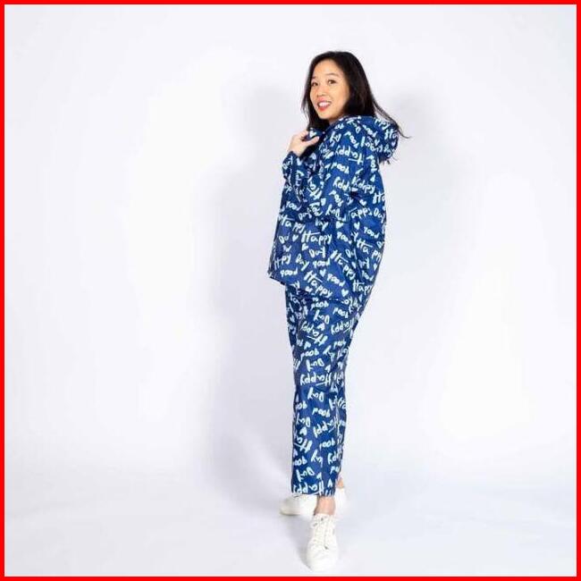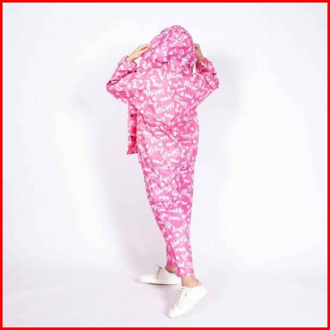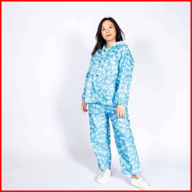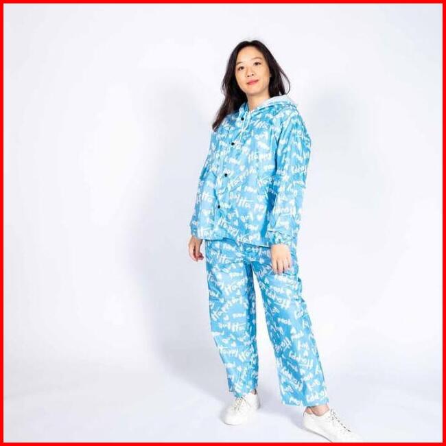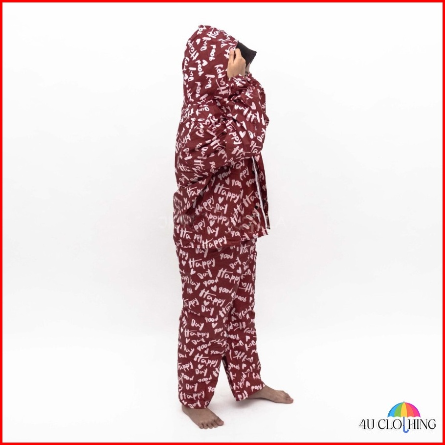 Jas Hujan Setelan Wanita Mantel Murah Motif Tulisan 81018 4u Clothing