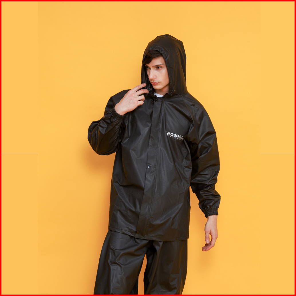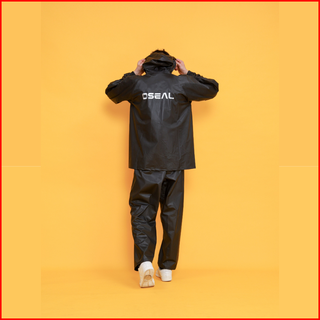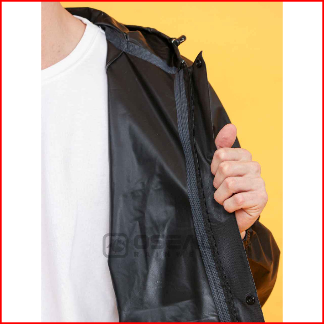 Jas Hujan Oseal Original Mantel Raincoat Pria Wanita Dewasa Full Seal Hitam