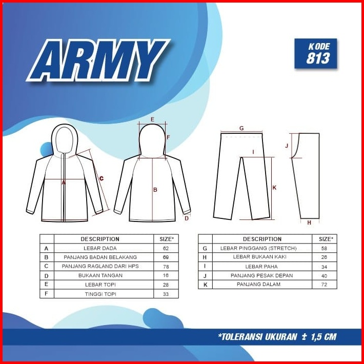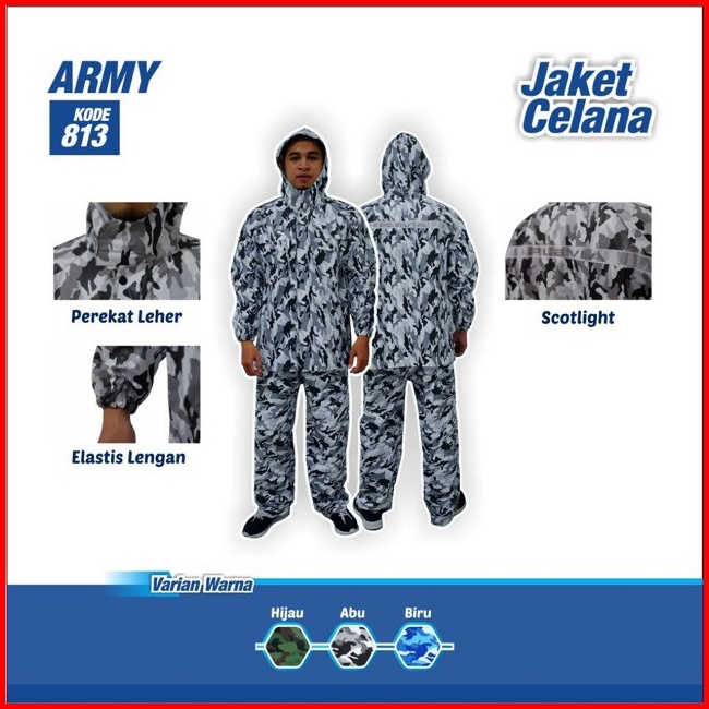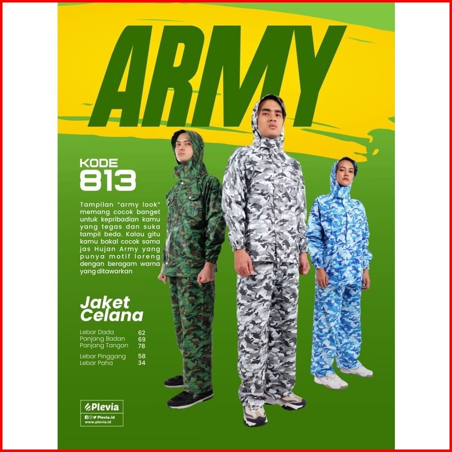 Jas Hujan Jaket Celana Plevia Army 813 Loreng