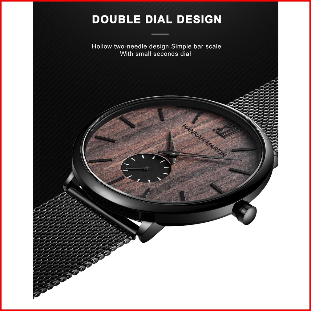 Hannah Martin Jam Tangan Pria Sangat Tipis 100 Original Kayu Arloji Cowok Quartz Watch 1002