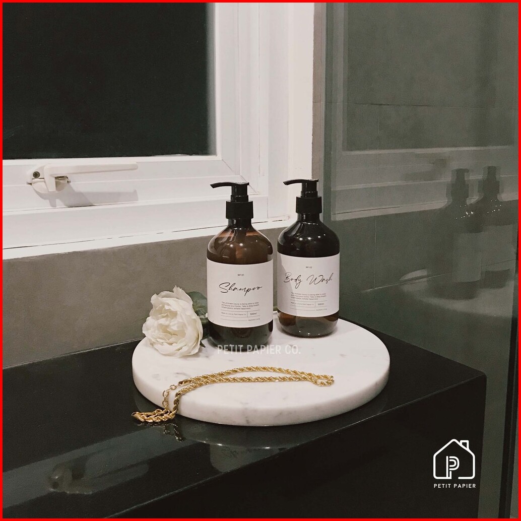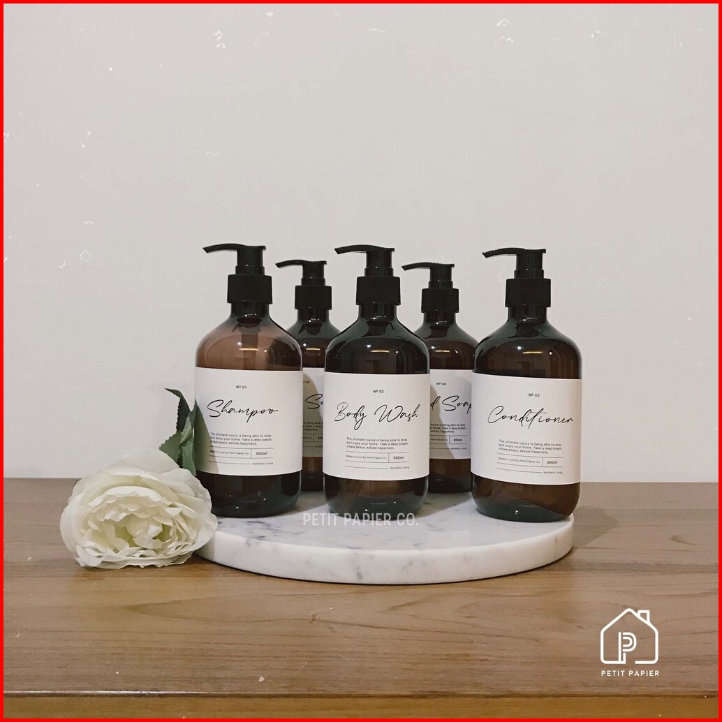 Papier Home Aesthetic Bathroom Bottles - Blanco - Refill Luxury Shampoo Bottle - Botol Sabun Label