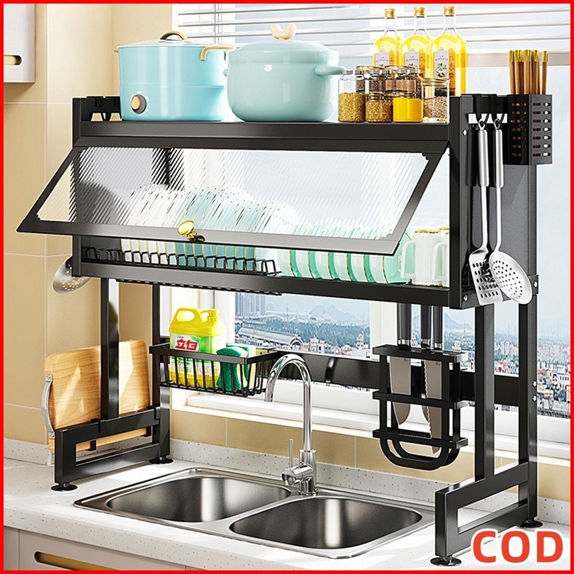 Rak Piring Wastafel Dapur Stainless Steel Multi-fungsi Dengan Penutup
