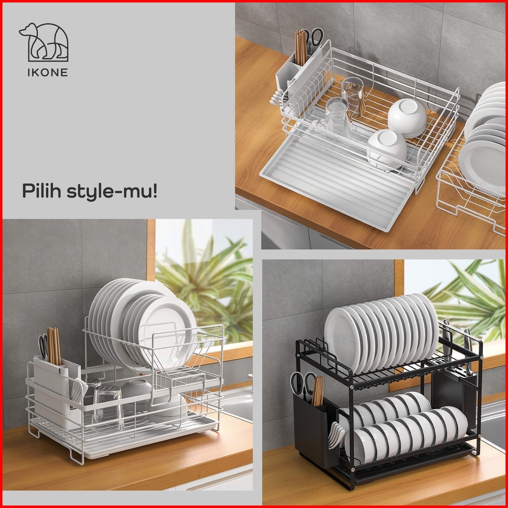 Ikoneraku Rak Piring Nordic Style Bertingkat Rak Dapur Rak Wastafel Peralatan Dapur Kokoh Anti Karat
