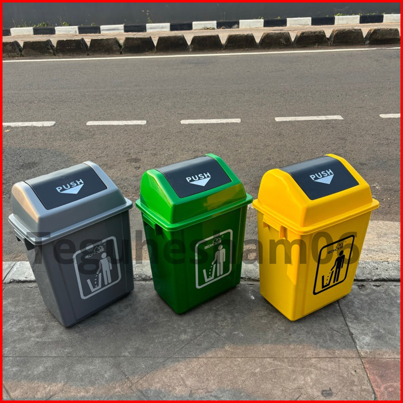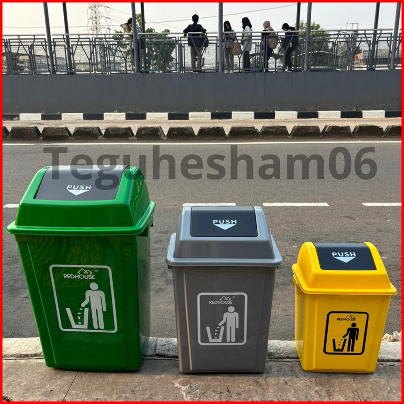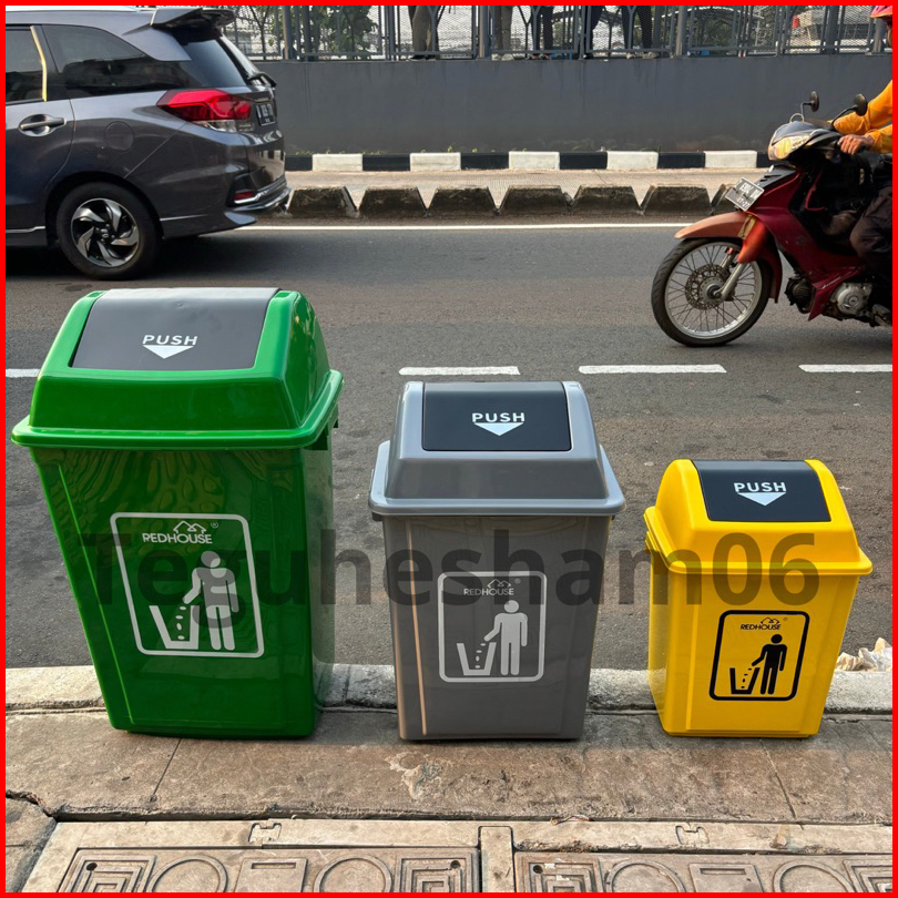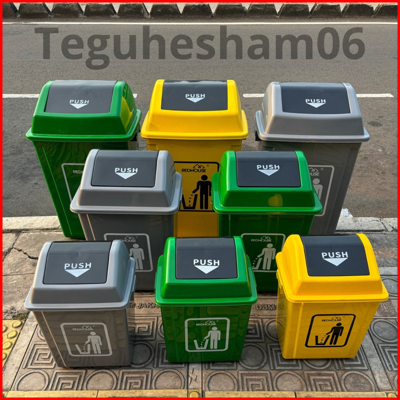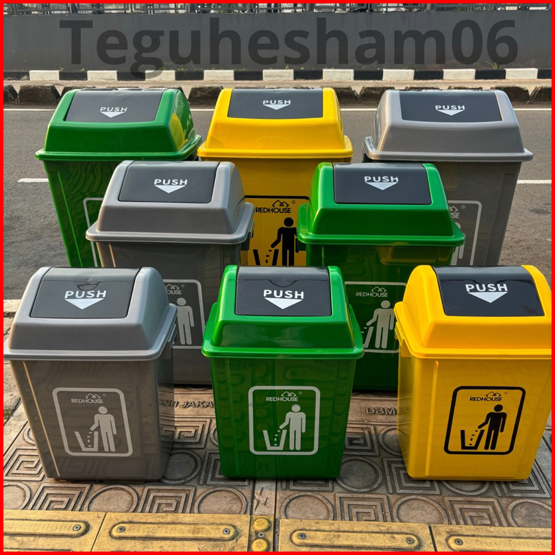Redhouse - Tempat Sampah Tutup Swing 20 40 60 Liter - Tempat Sampah Hijau Kuning Abu-abu - Tong Sampah Tempatsampah