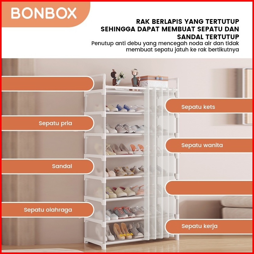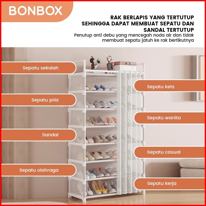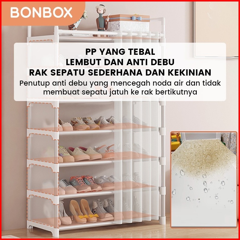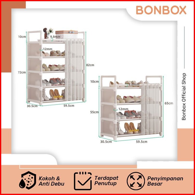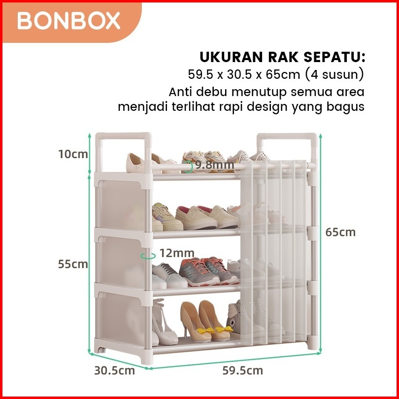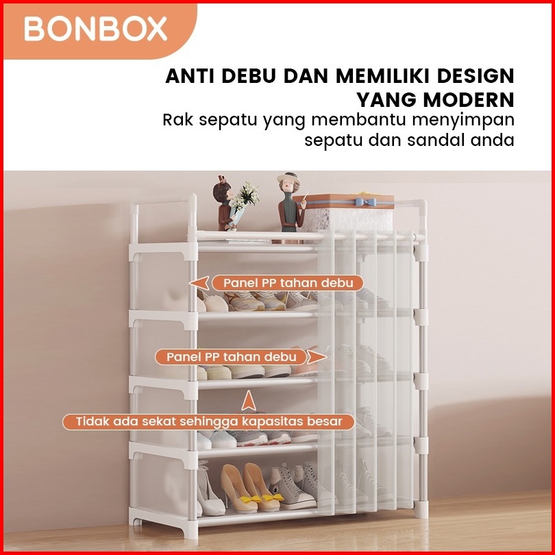 Bonbox Rak Sepatu 4 Dan 5 Layer Tebal Shoe Rack Portable Serbaguna Muat 15 Atau Lebih Pasang Penutup Rapat Kuat Tebal Se