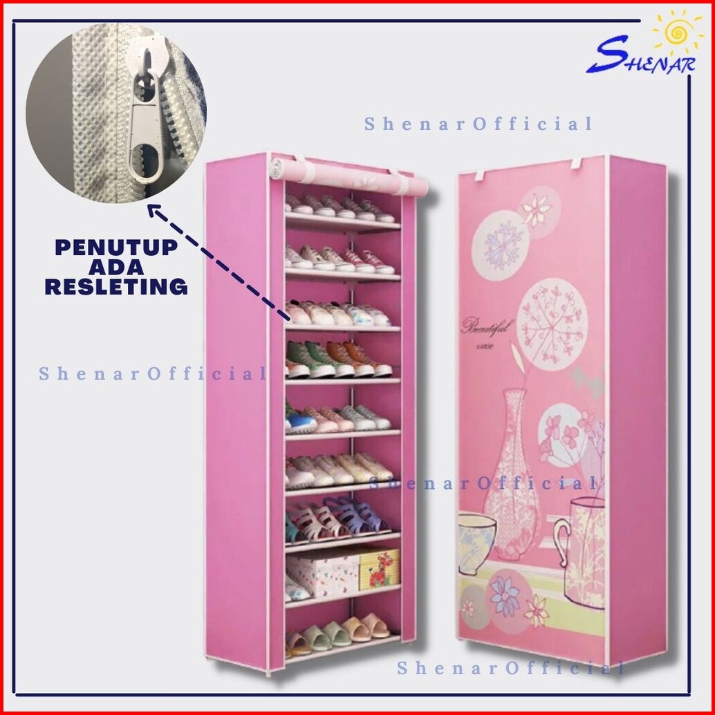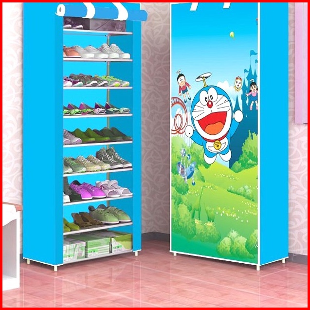 Murah Rak Sepatu 10 Susun Karakter Dengan Cover Gambar Unik Shoe Rack 10 Susun Ada Resleting
