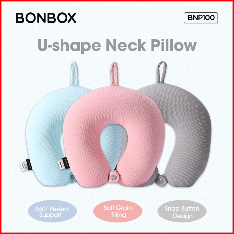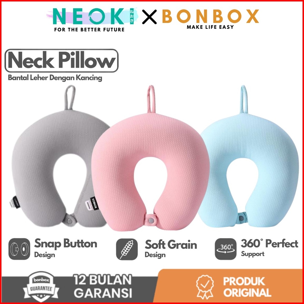 Bonbox Bnp100 Neck Pillow Bantal Leher Travel Anti Pegal Lembut Dewasa Multifungsi 360 Dengan Kancing Original