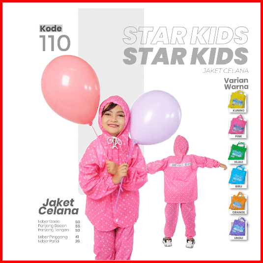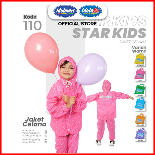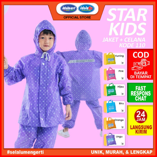 Idolmart Jas Hujan Anak Kids Plevia 110 Motif Star Merk Plevia